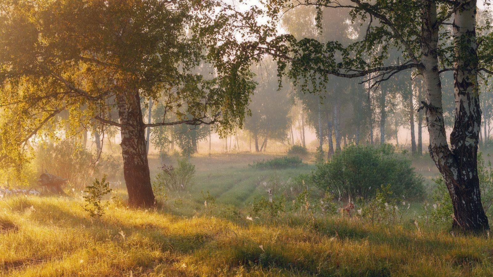 пейзаж березы цветы