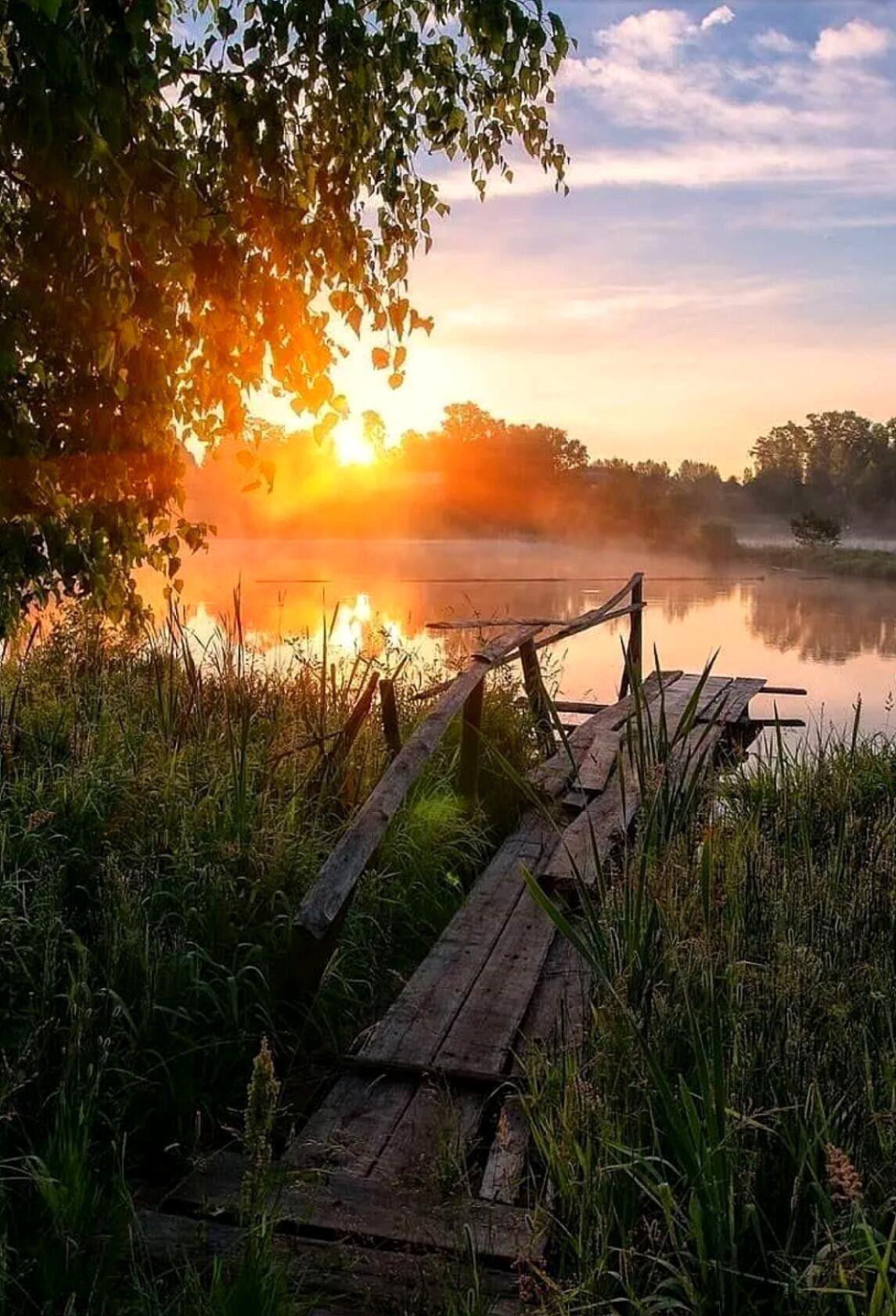 река мостки рассвет деревня