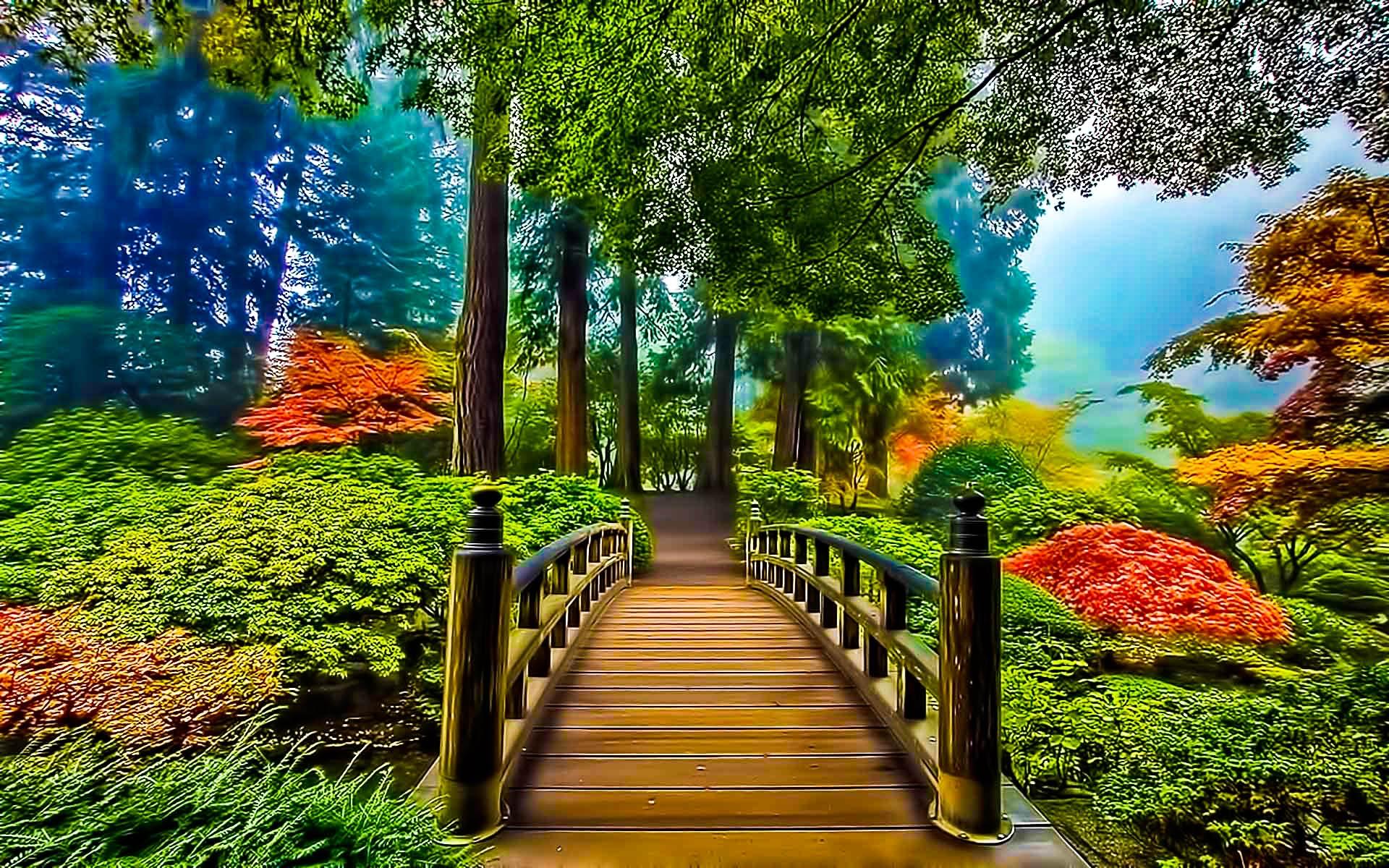 фотообои мост в лесу