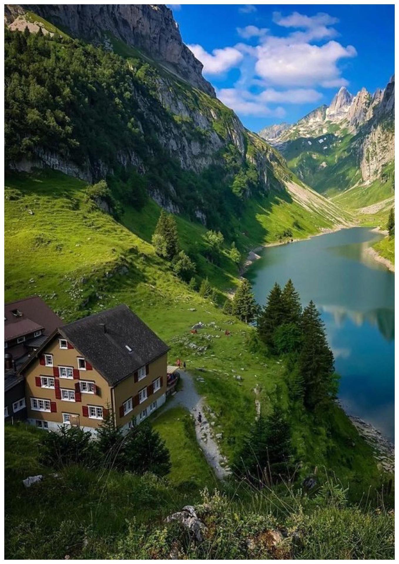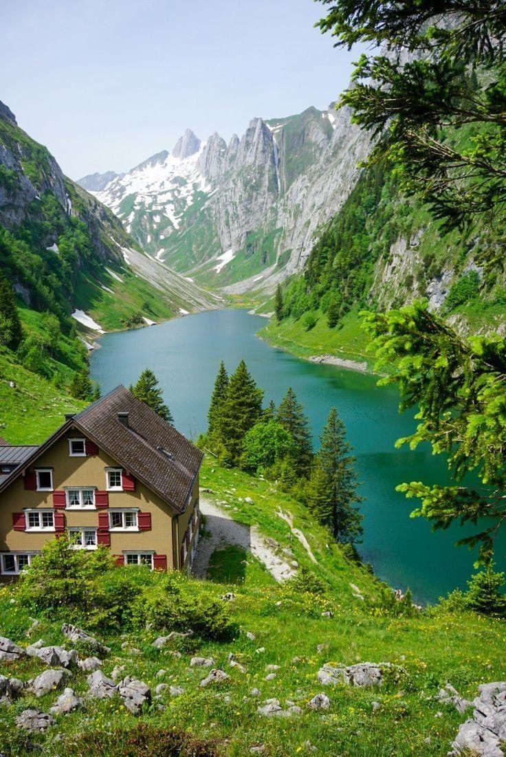 одинокий дом в горах швейцарии