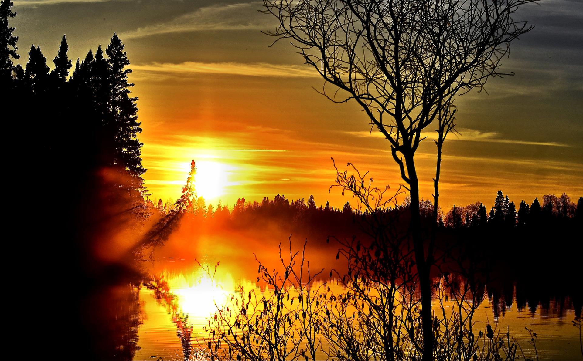 закат в лесу