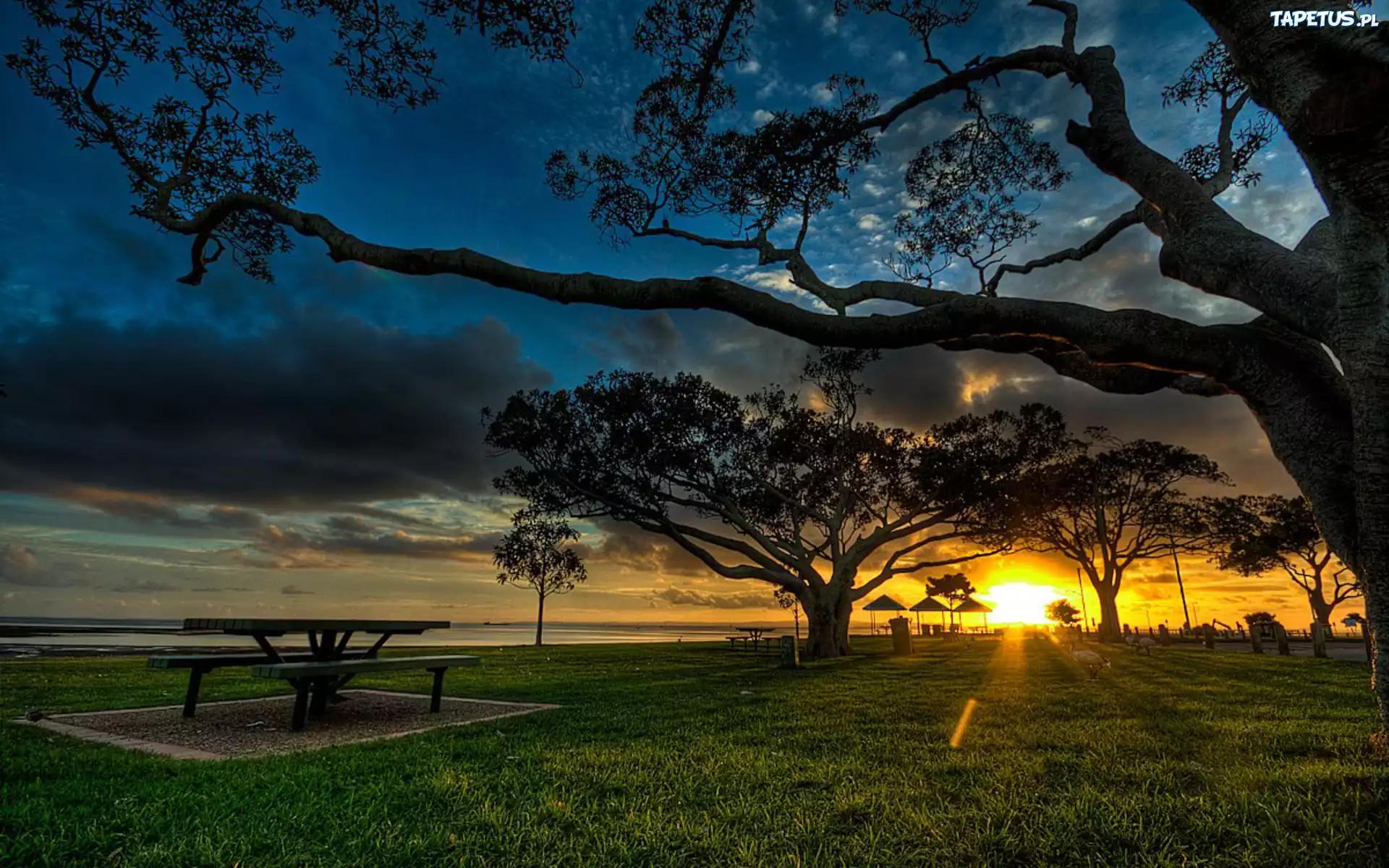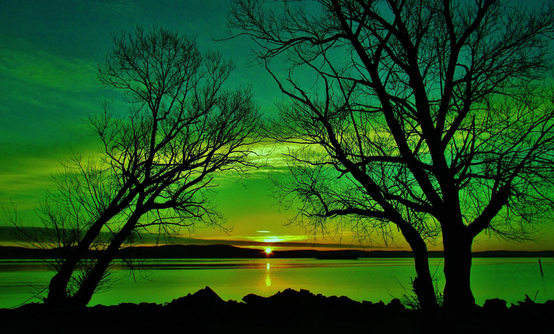 деревья вечером