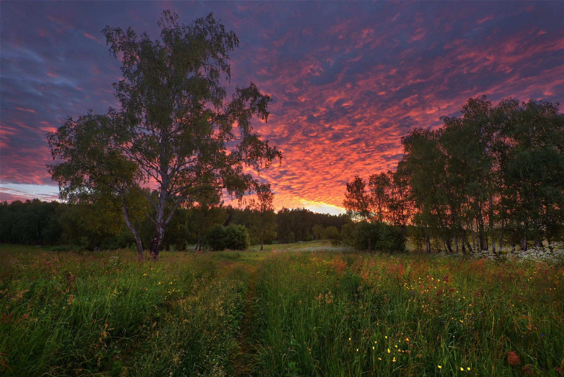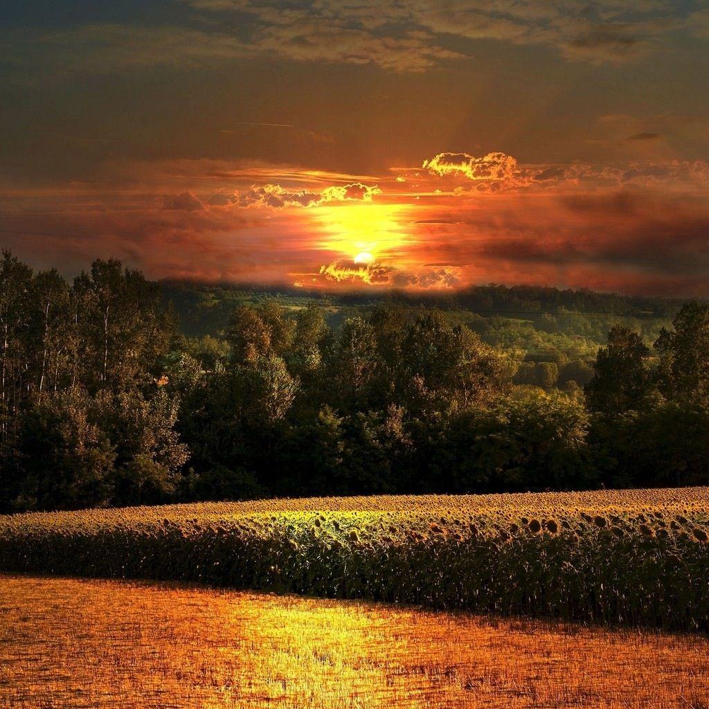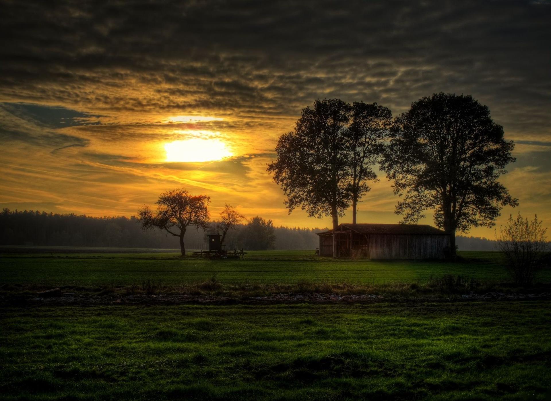 закат в поле