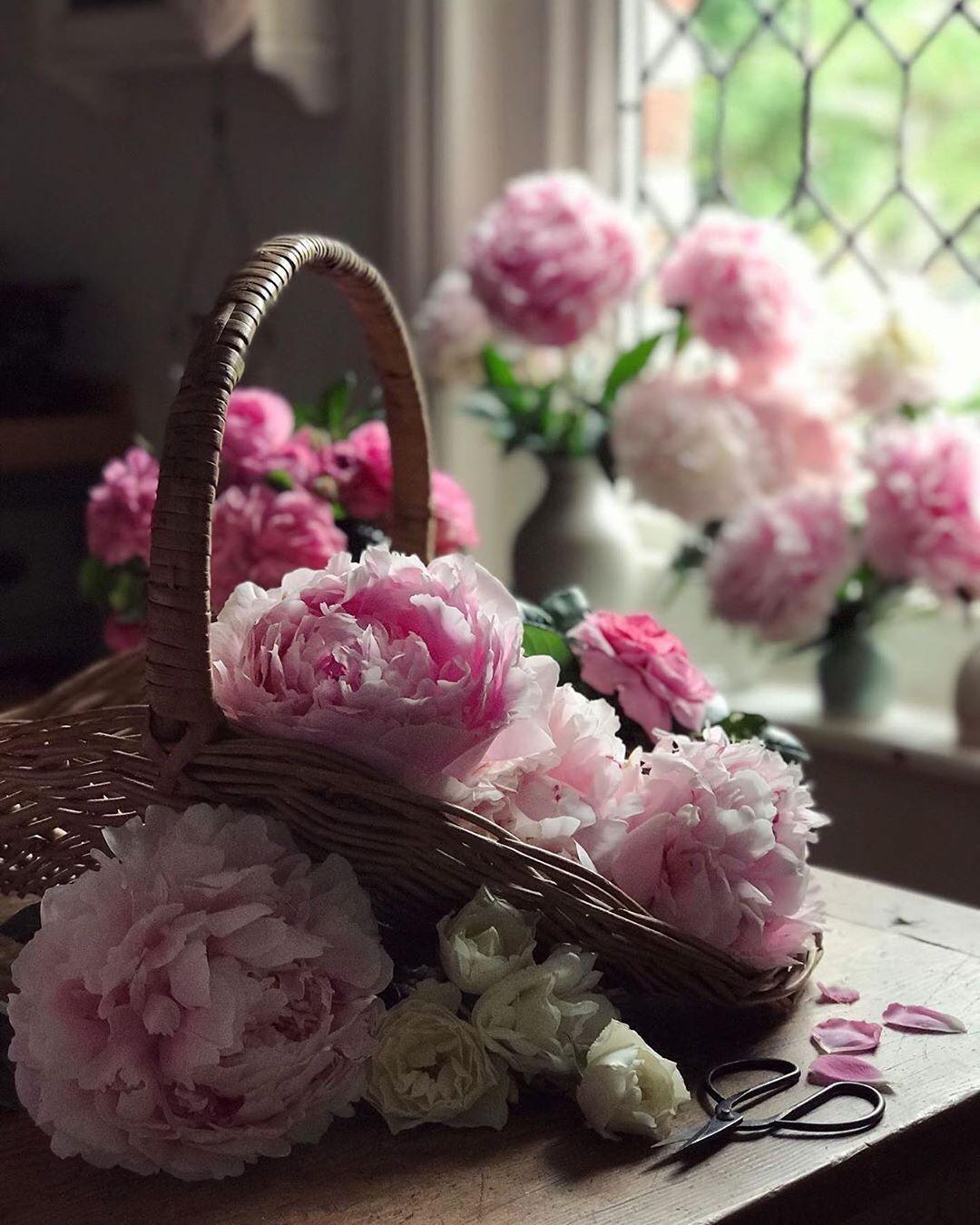 корзина с пионами