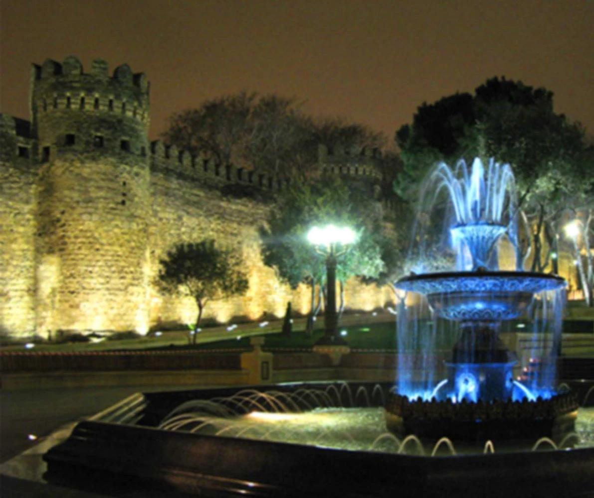 фонтаны баку ночью