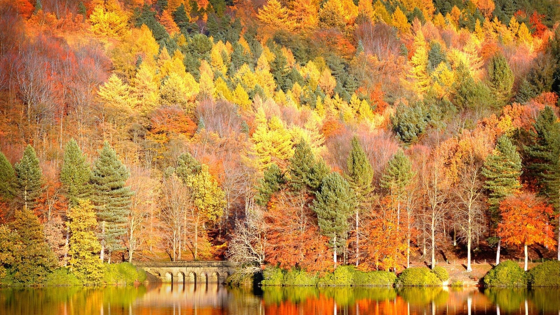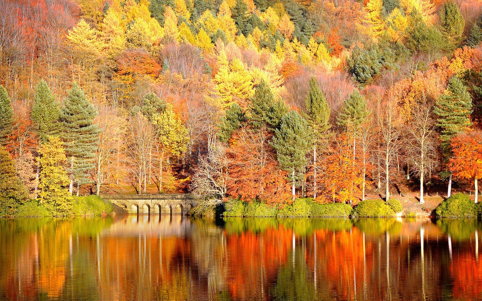осенний пейзаж с мостиком