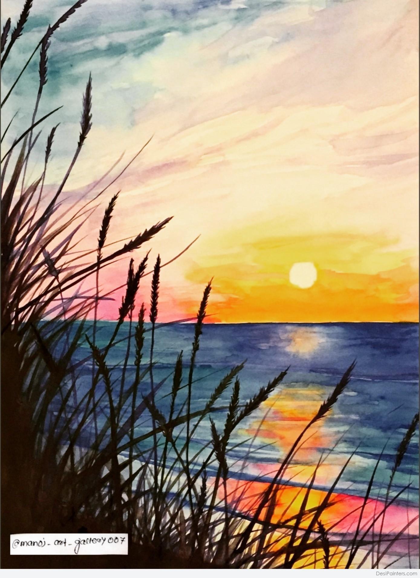 закат акварель
