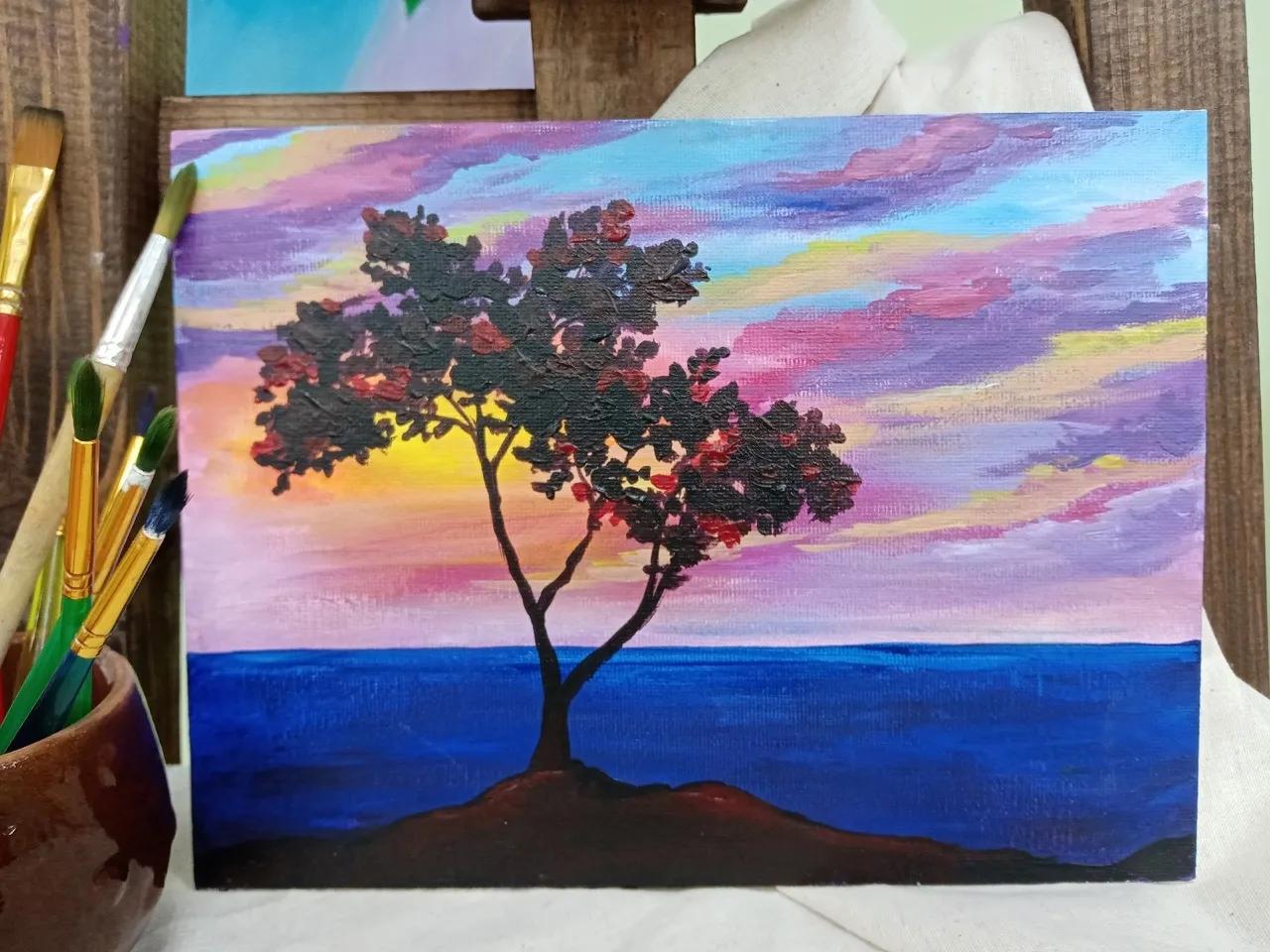 картина дерево на закате