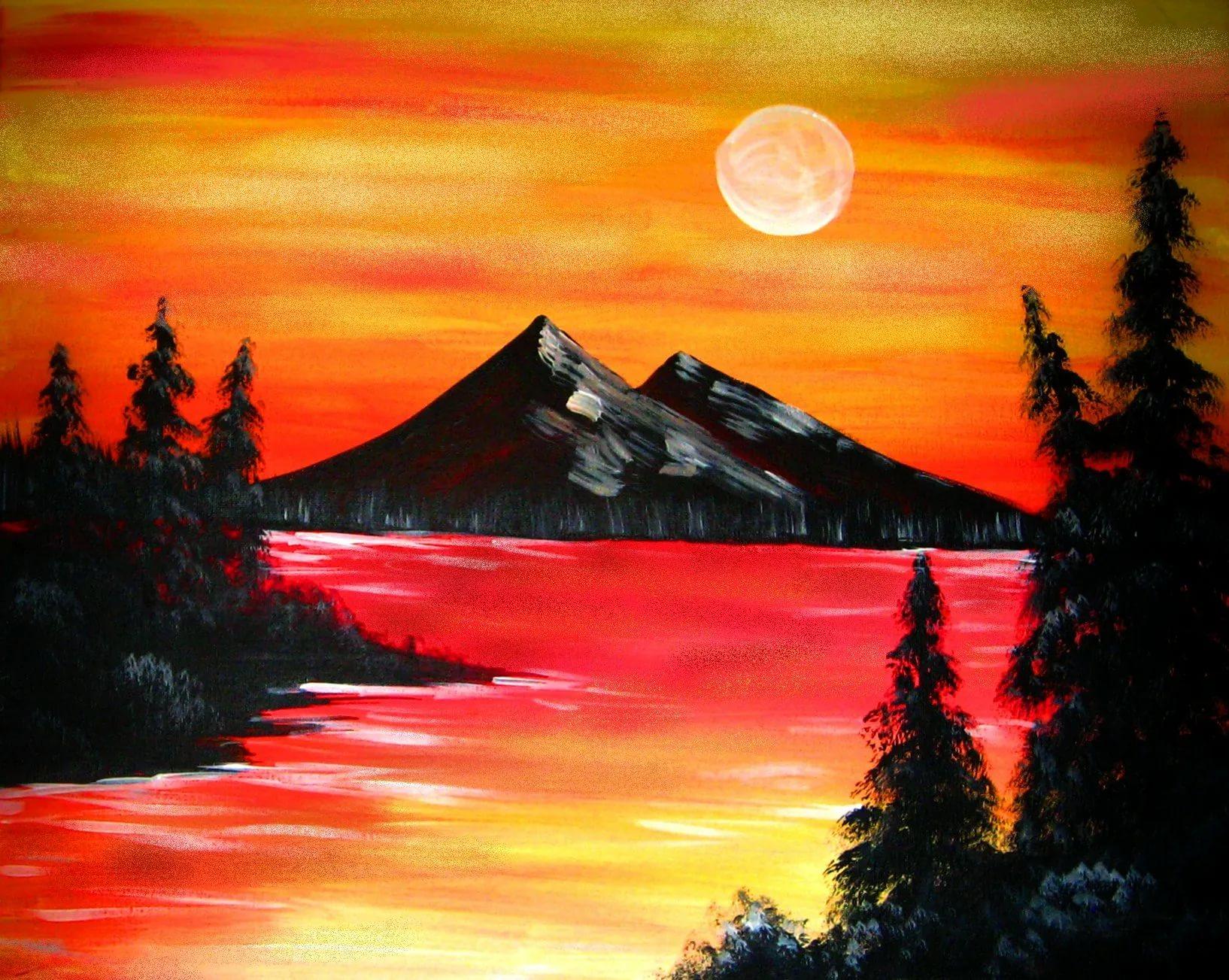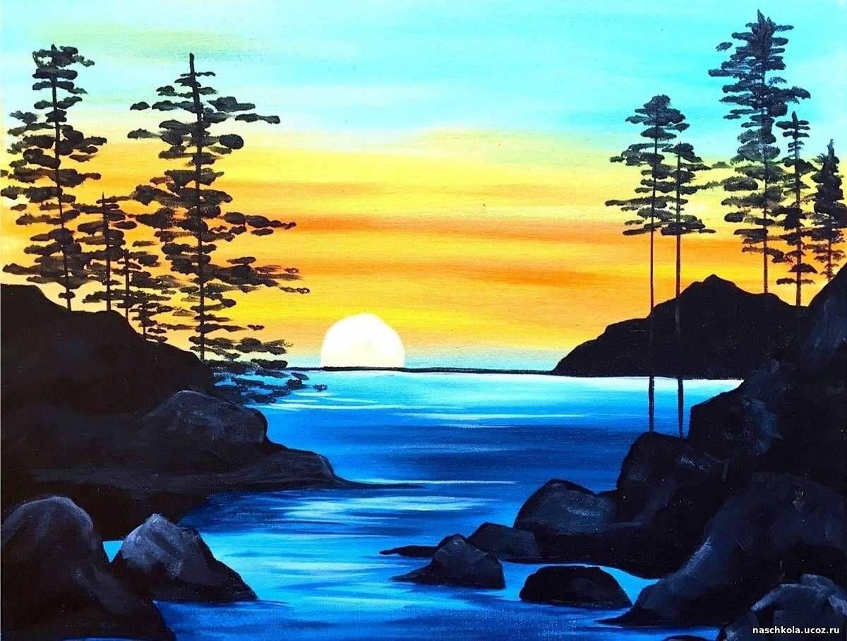 рисунки гуашью закат