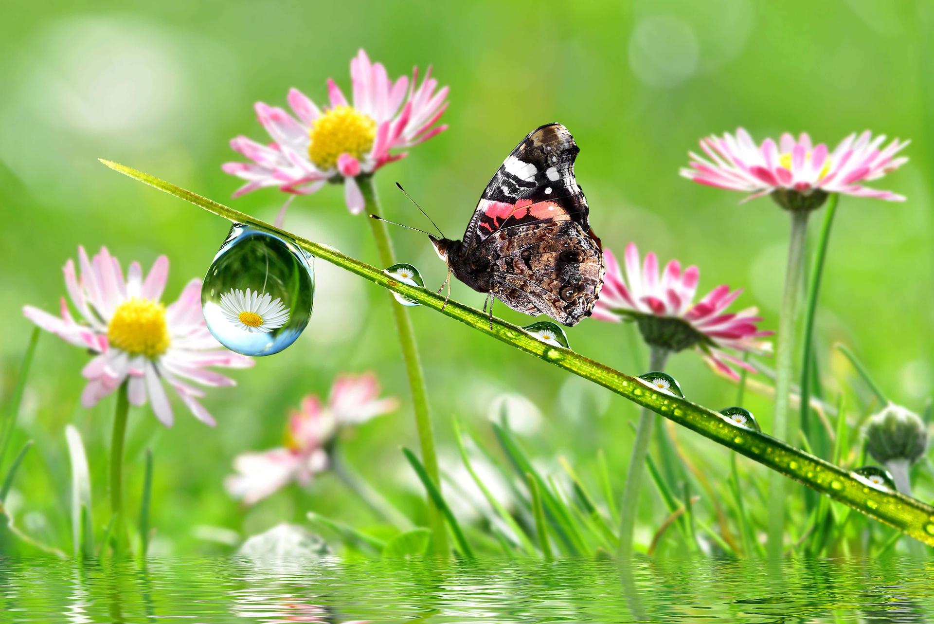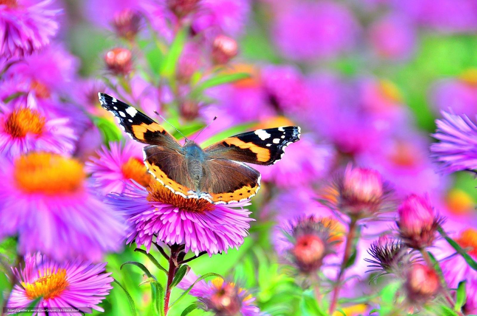 лето цветы бабочки