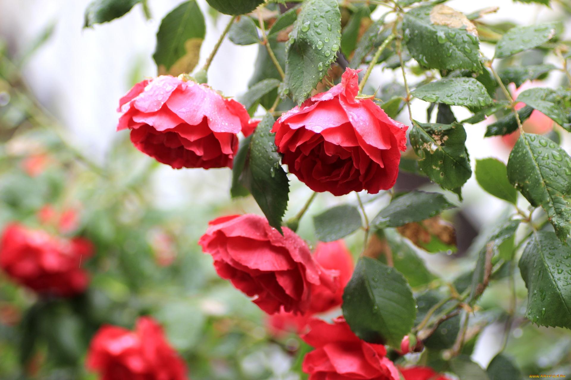 розы под дождем живые