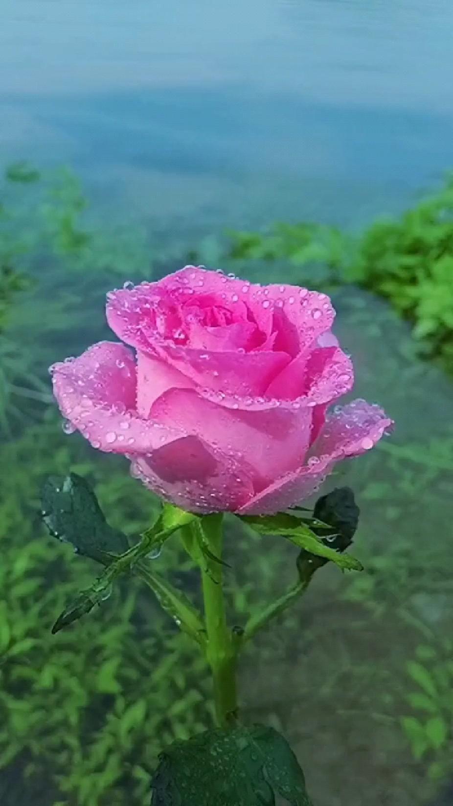 роза с каплями росы