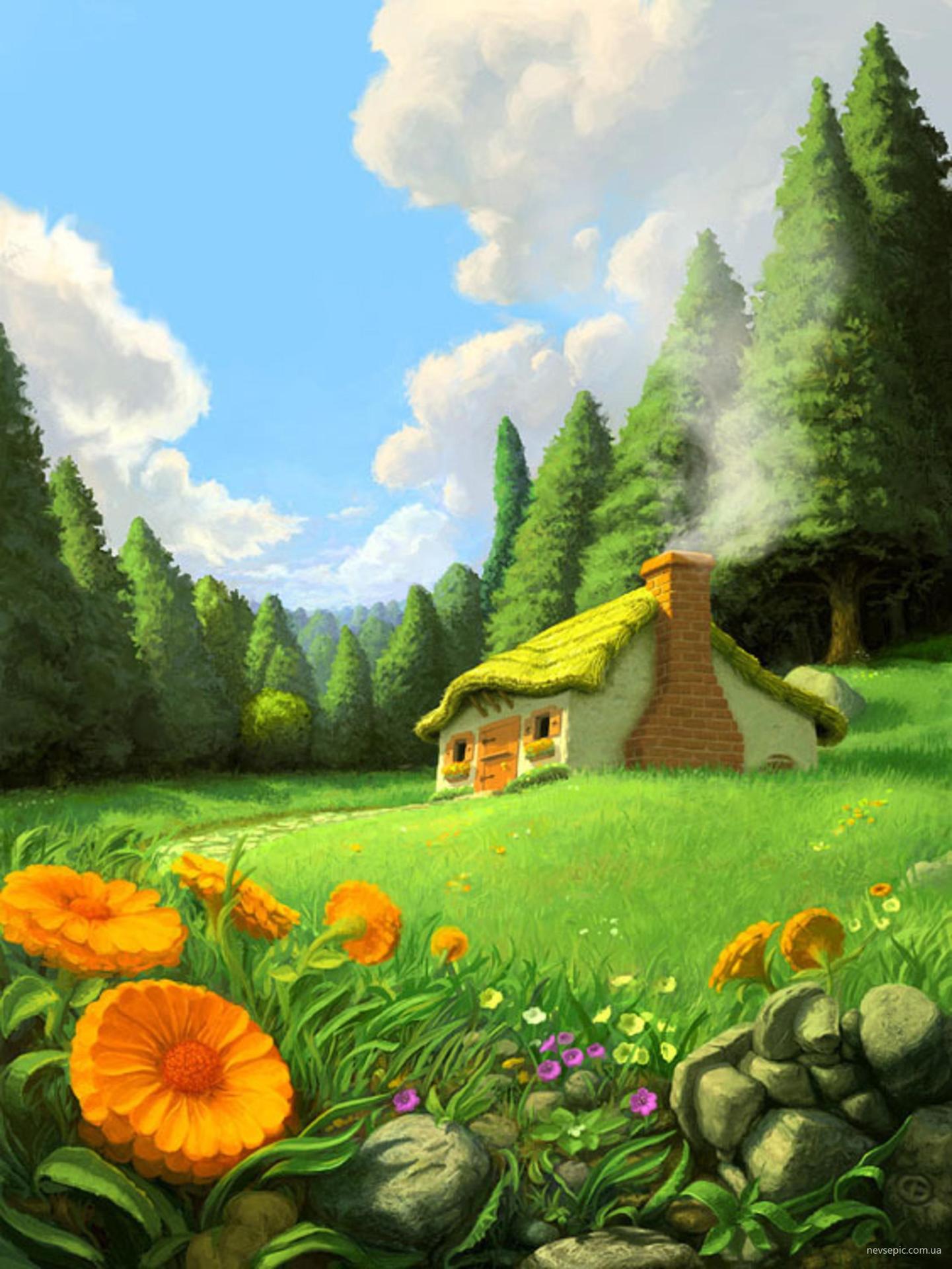 сказочная поляна с домиком