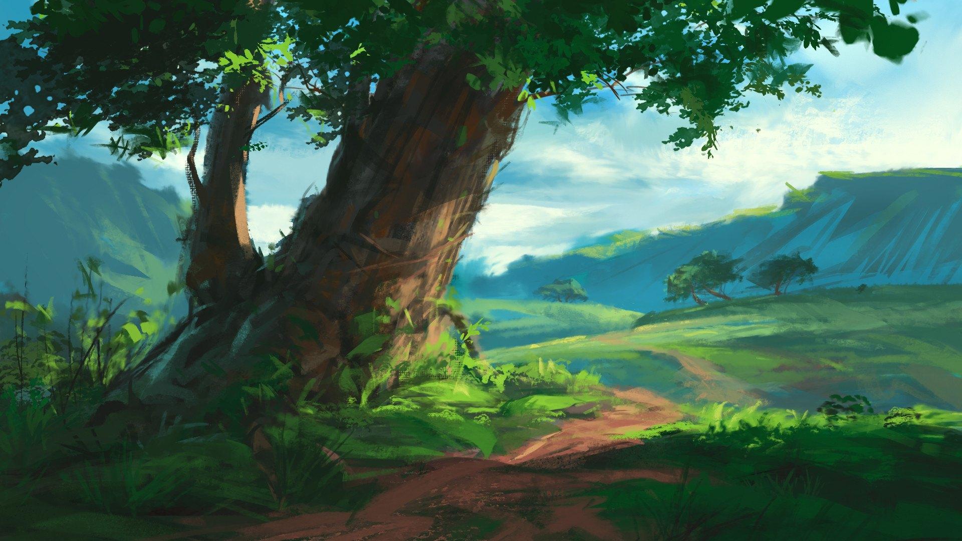 хаяо миядзаки ландшафт деревья