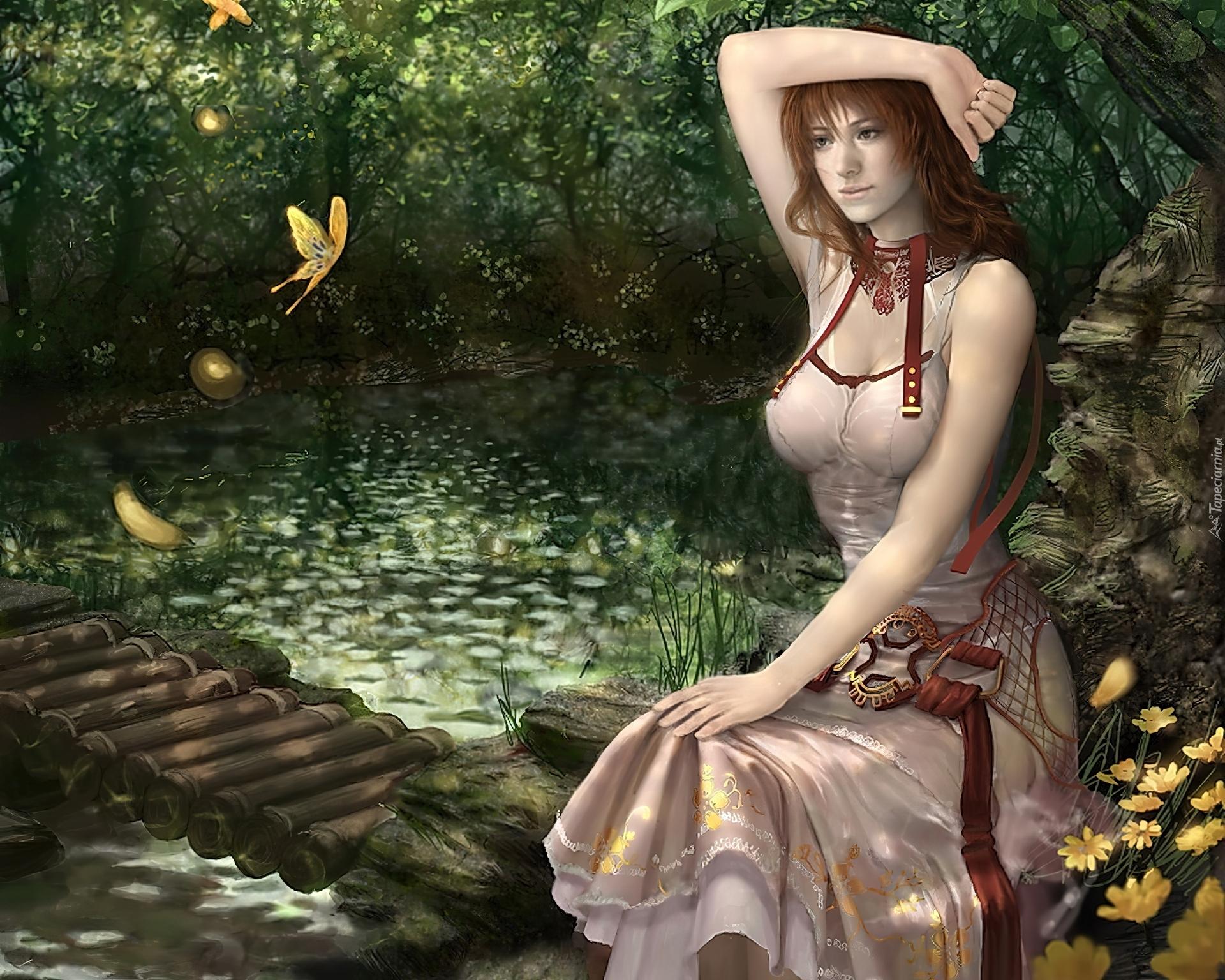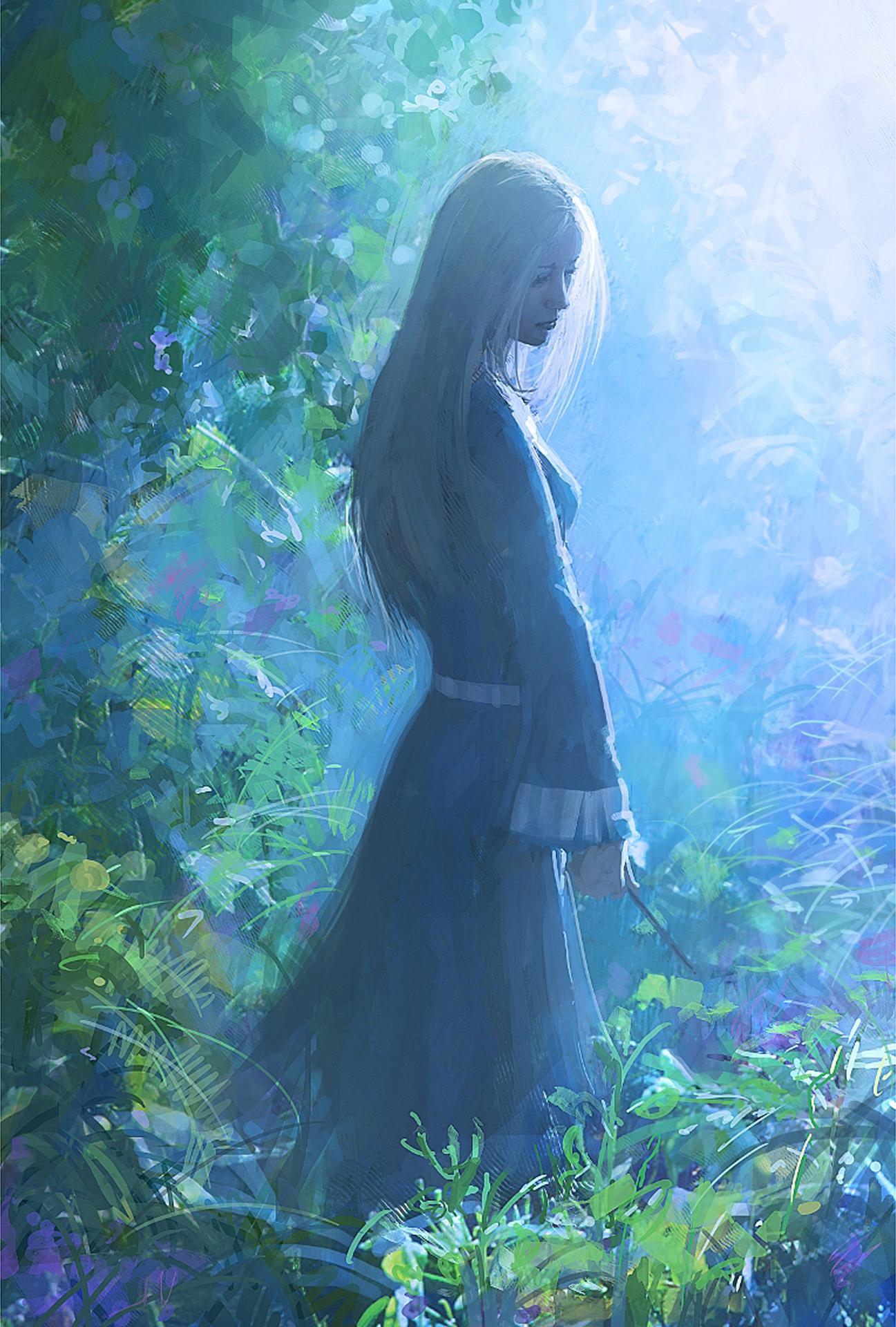 девушка в лесу арт