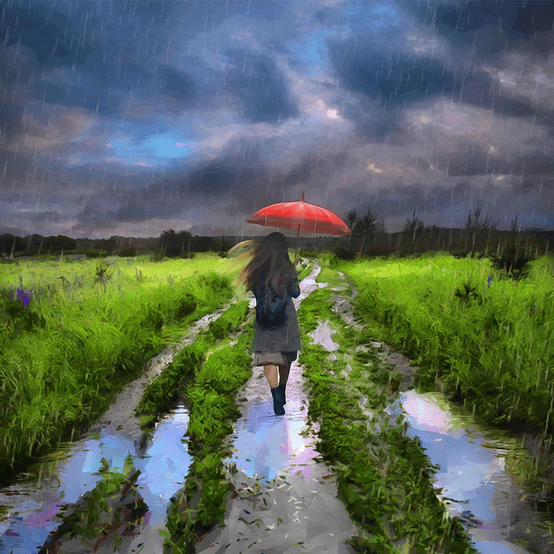 под дождем