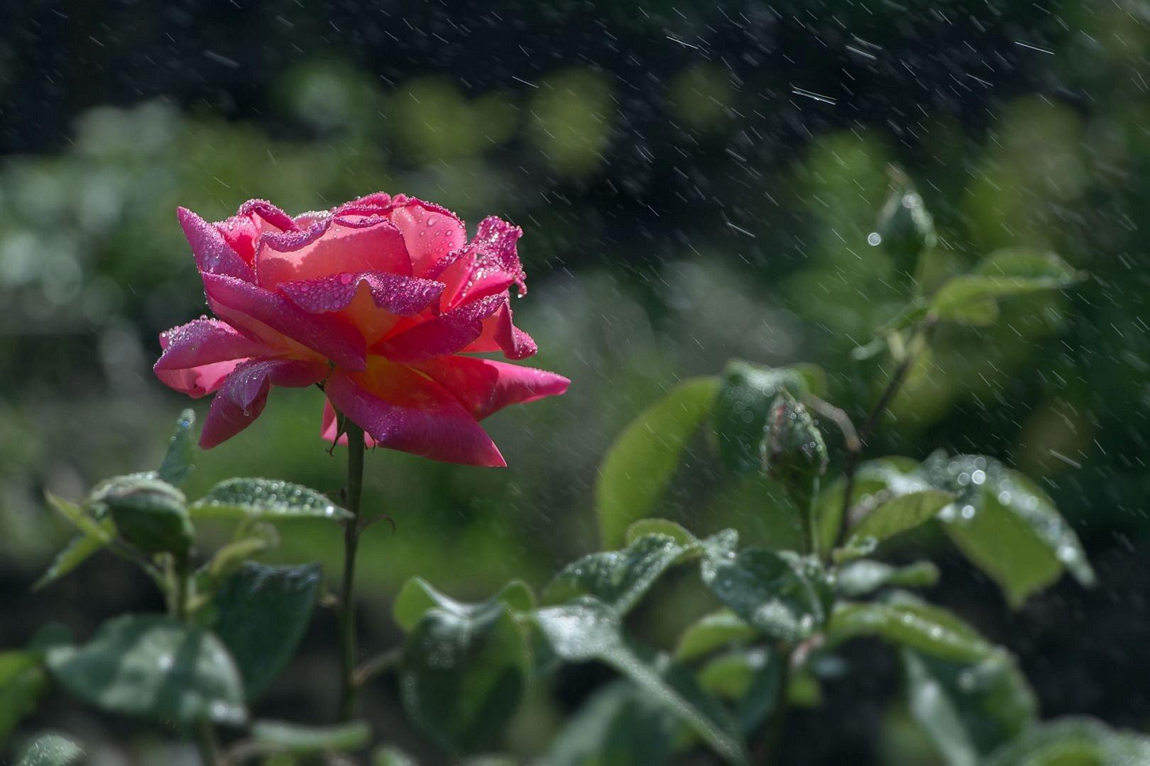 роза под дождем