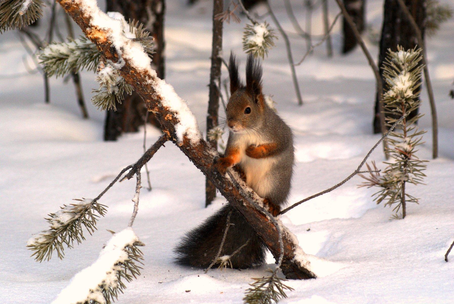 белочка зимой