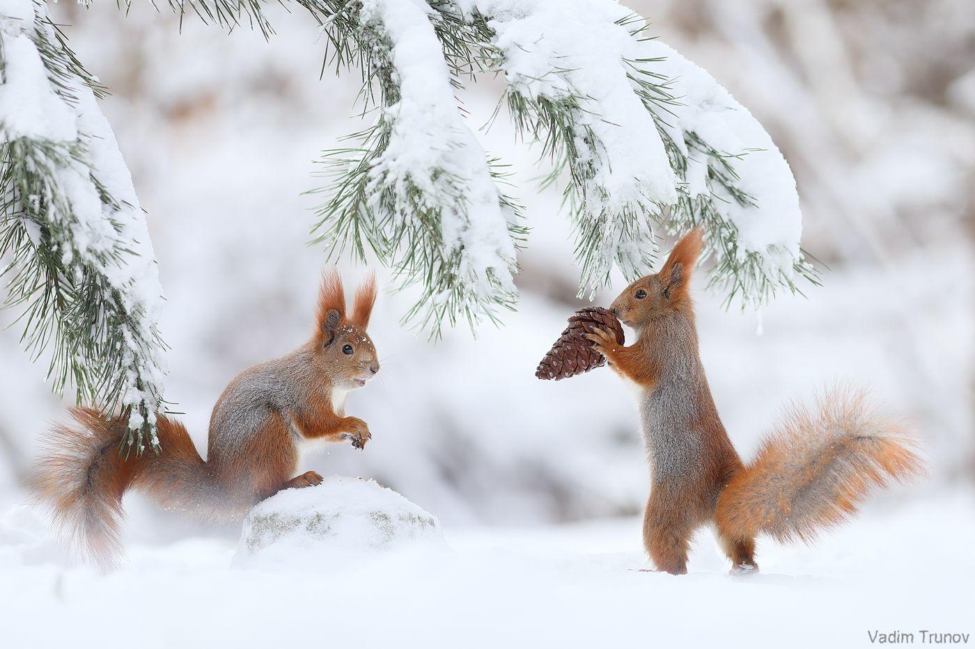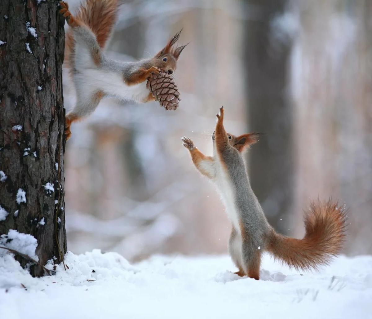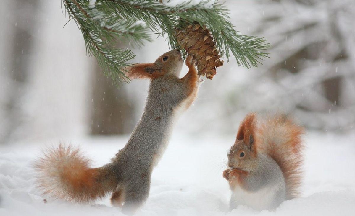 красивые белки зимой