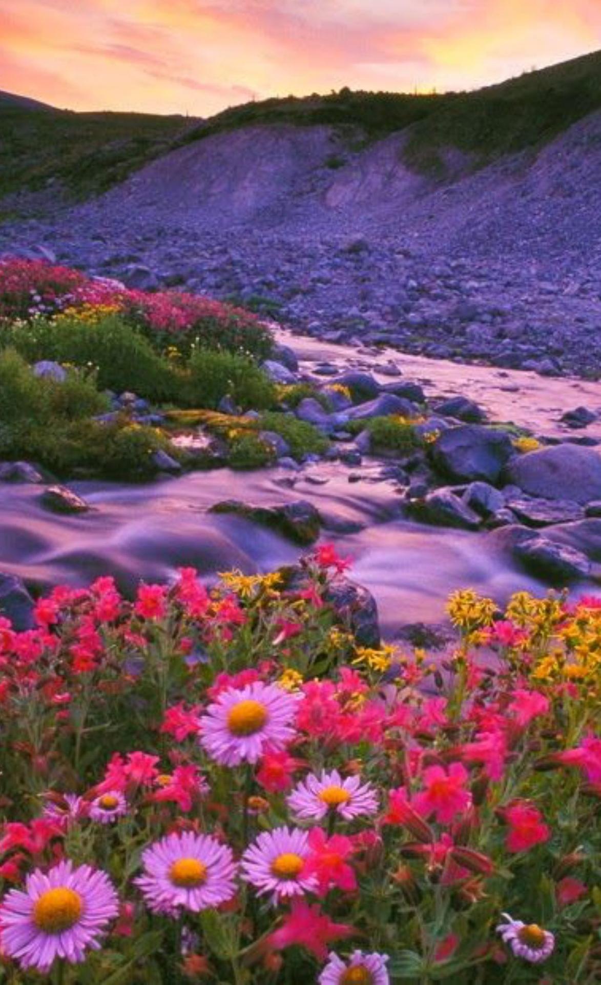 горы река закат