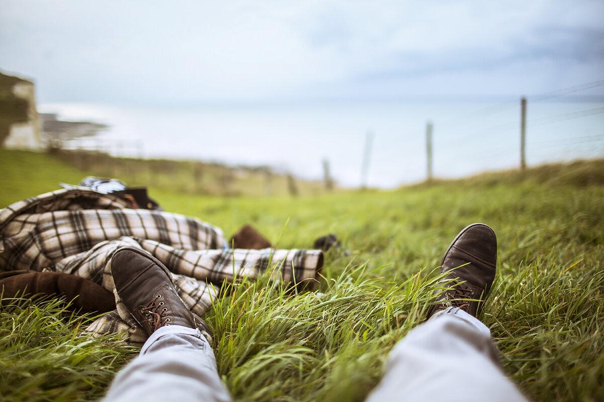 лежит на траве