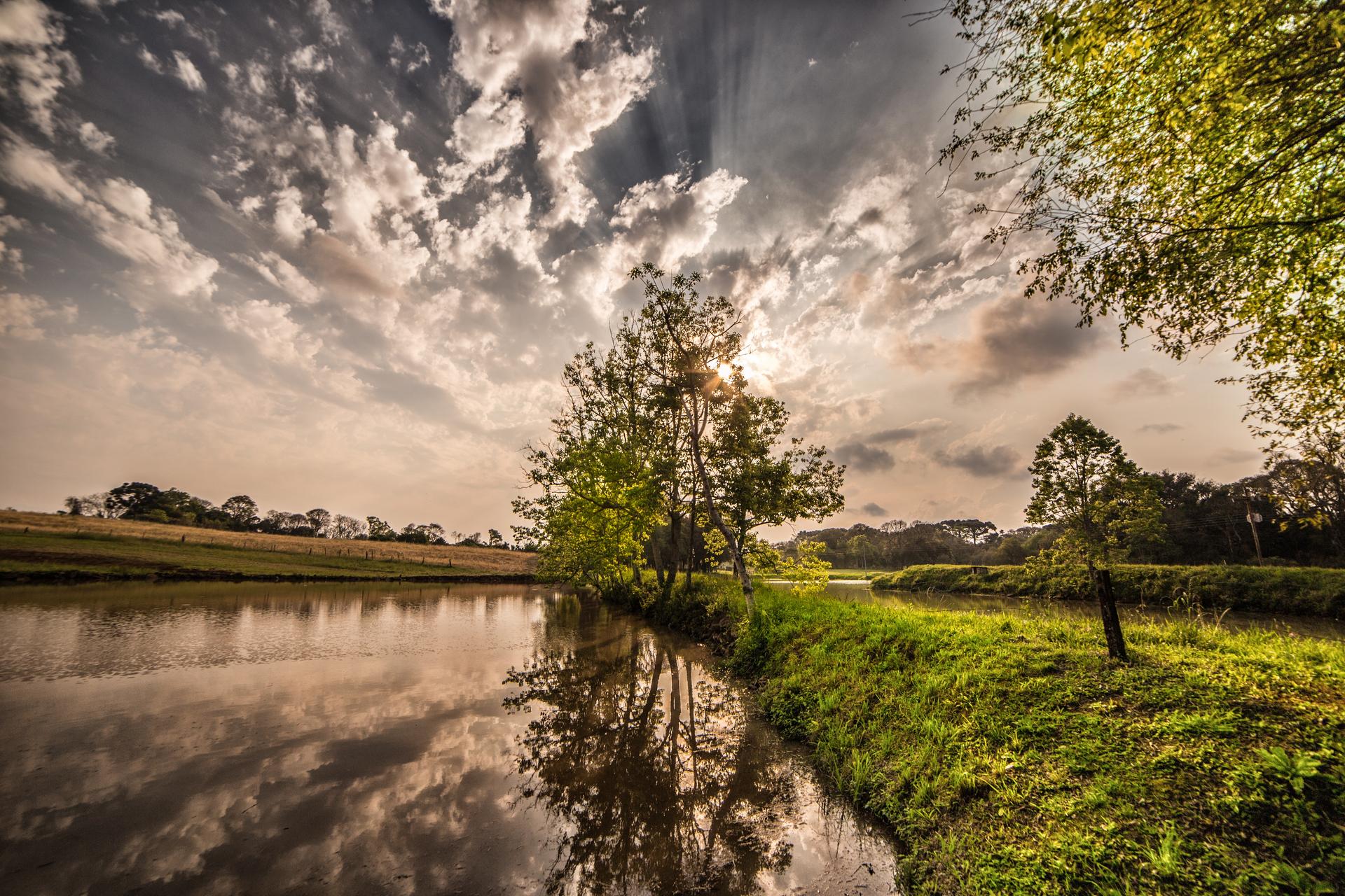 красивый закат пруд