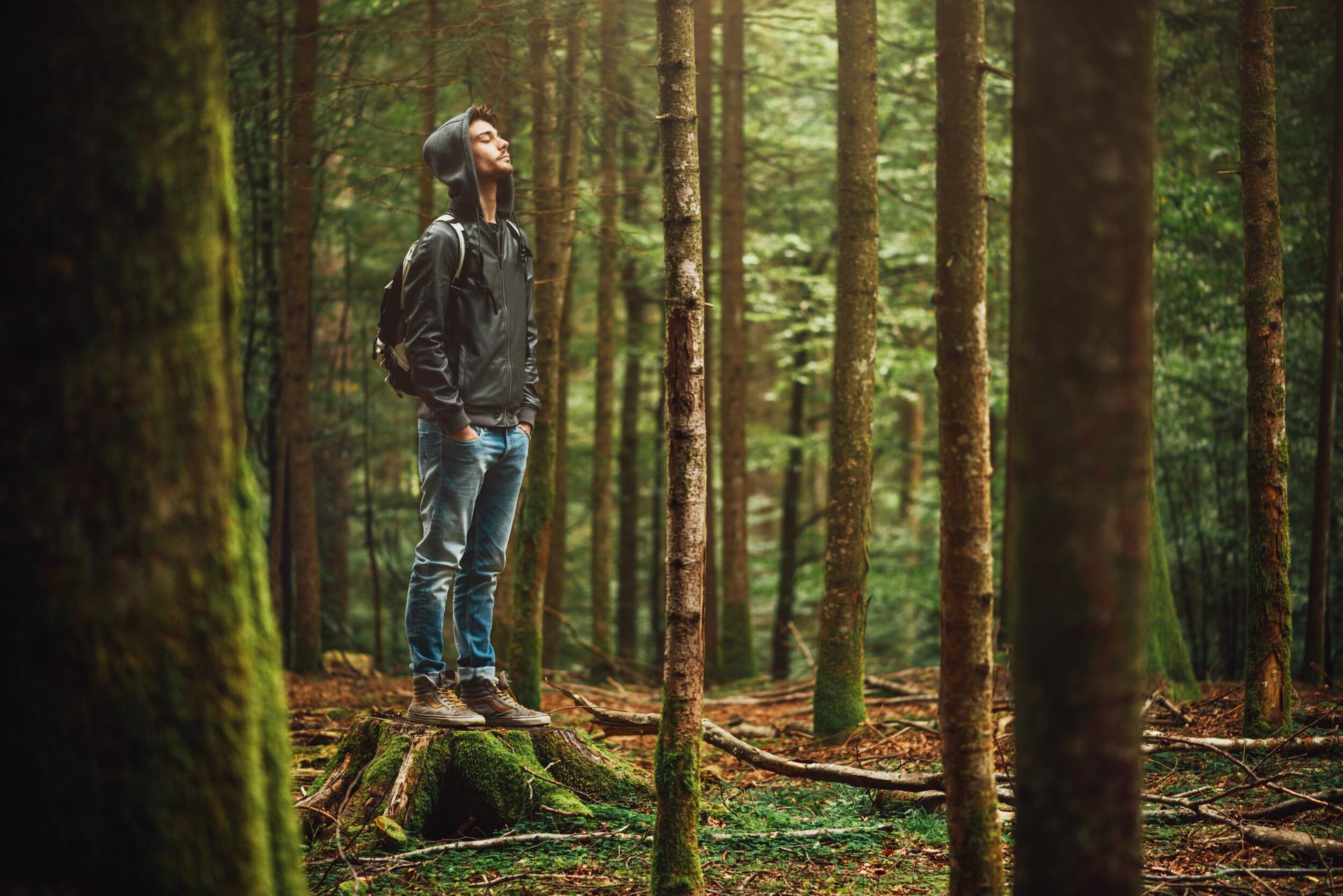 парень в лесу