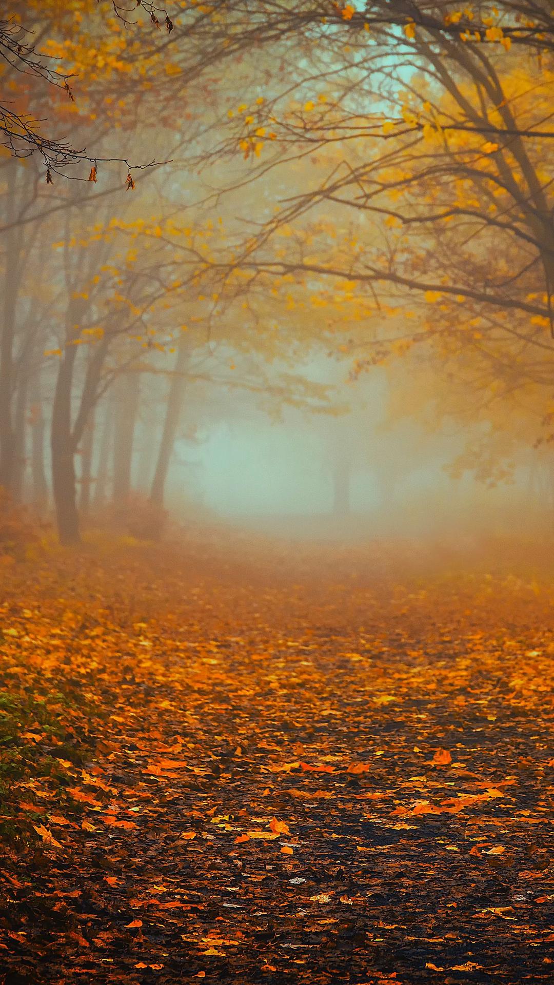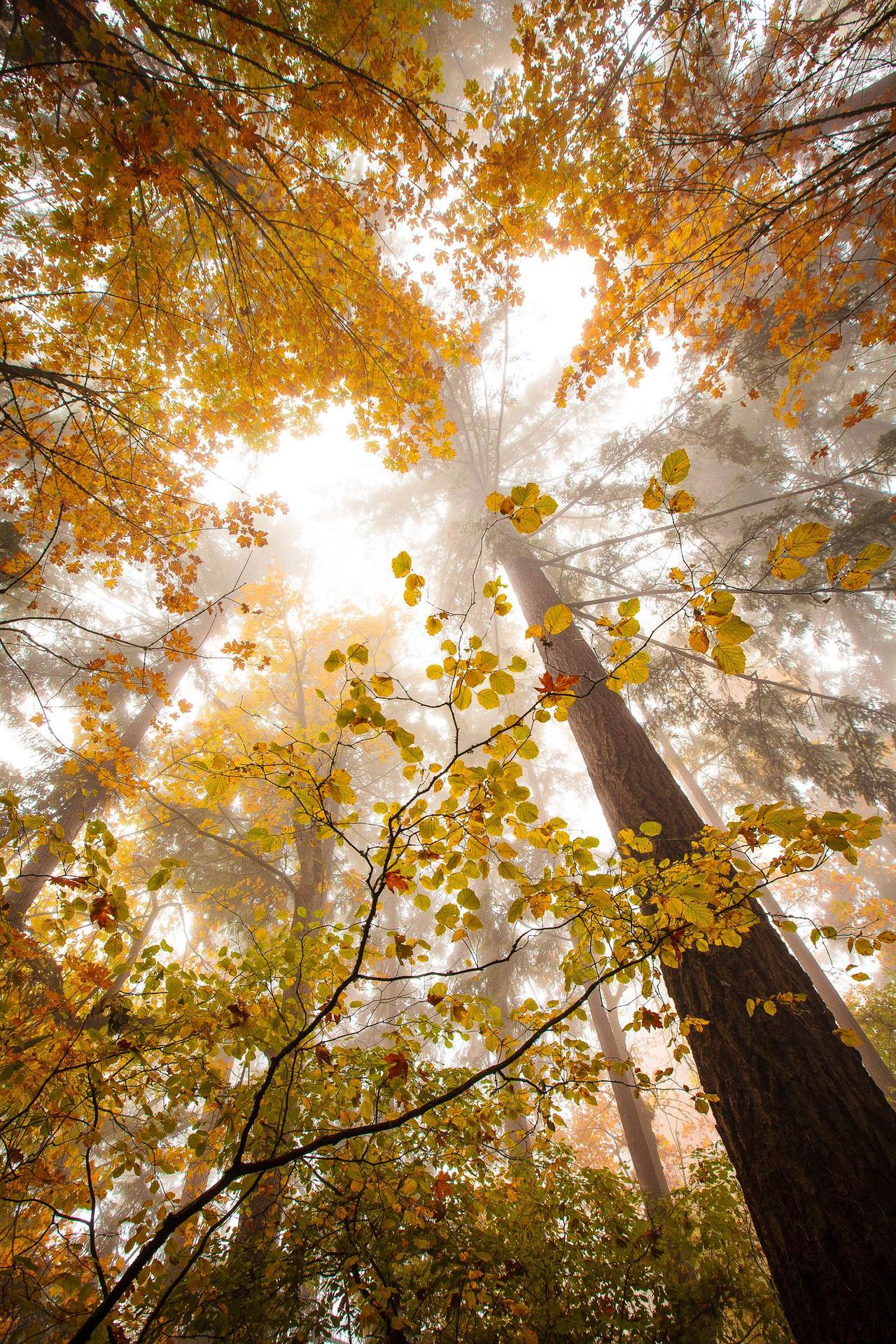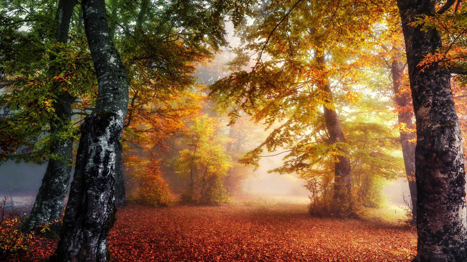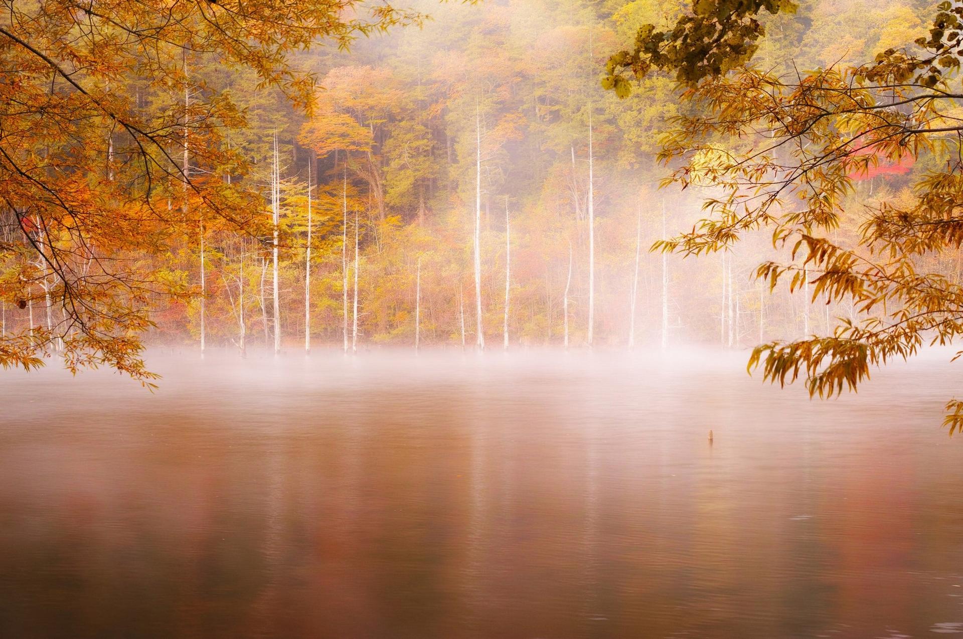 туманное утро в осеннем лесу