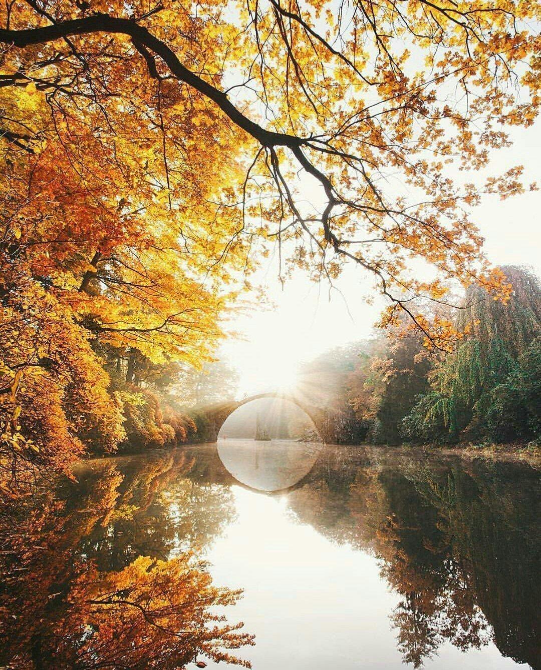 осенний пейзаж с мостиком