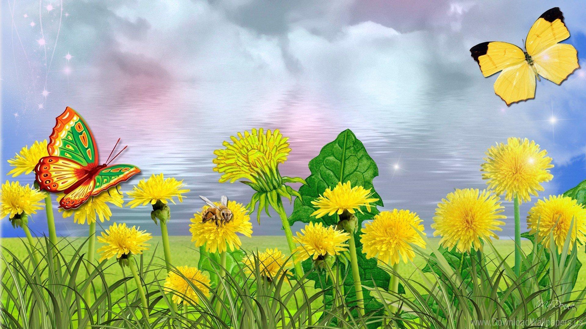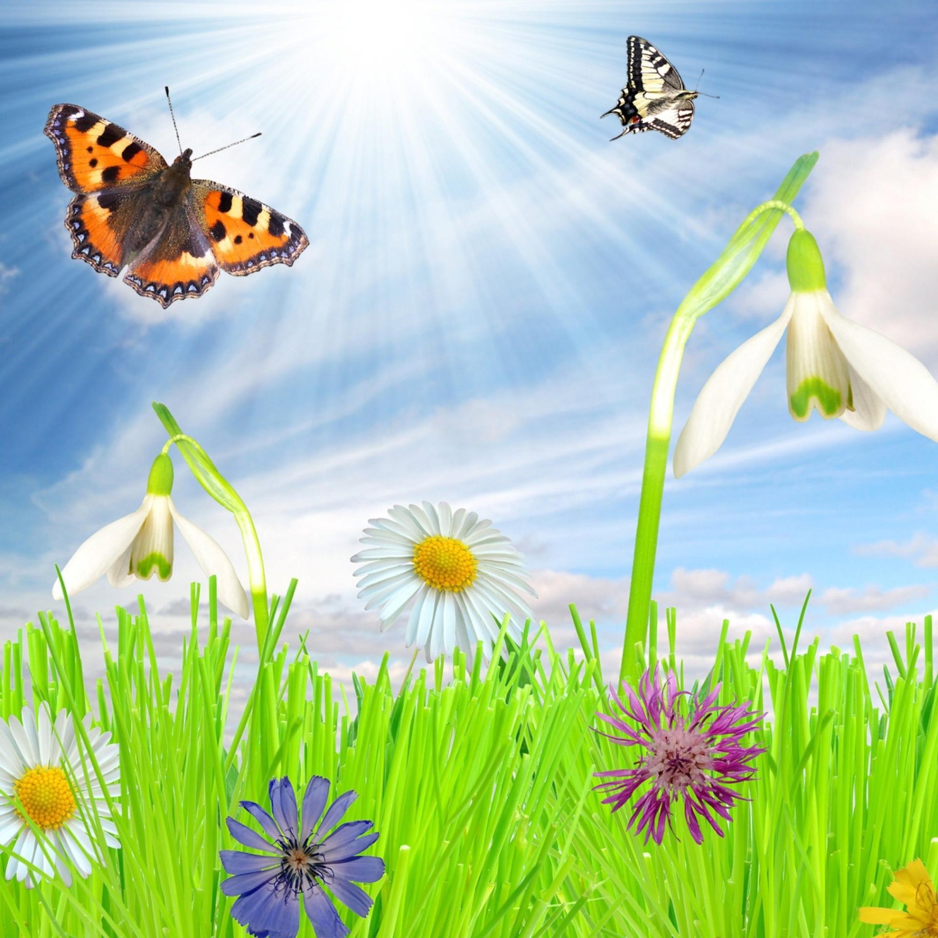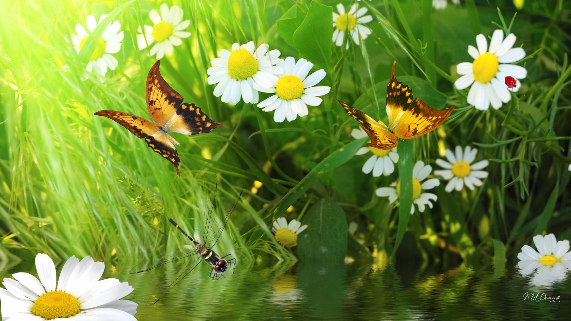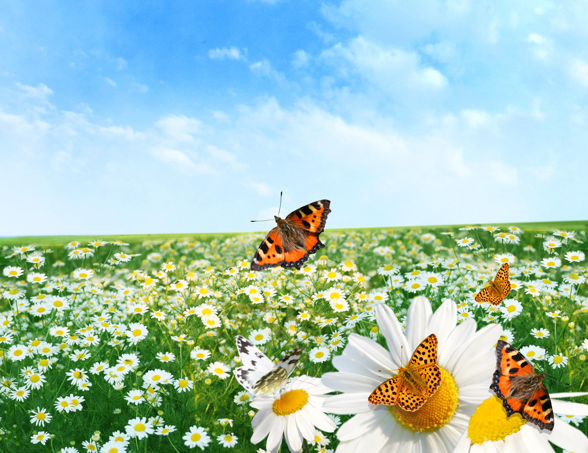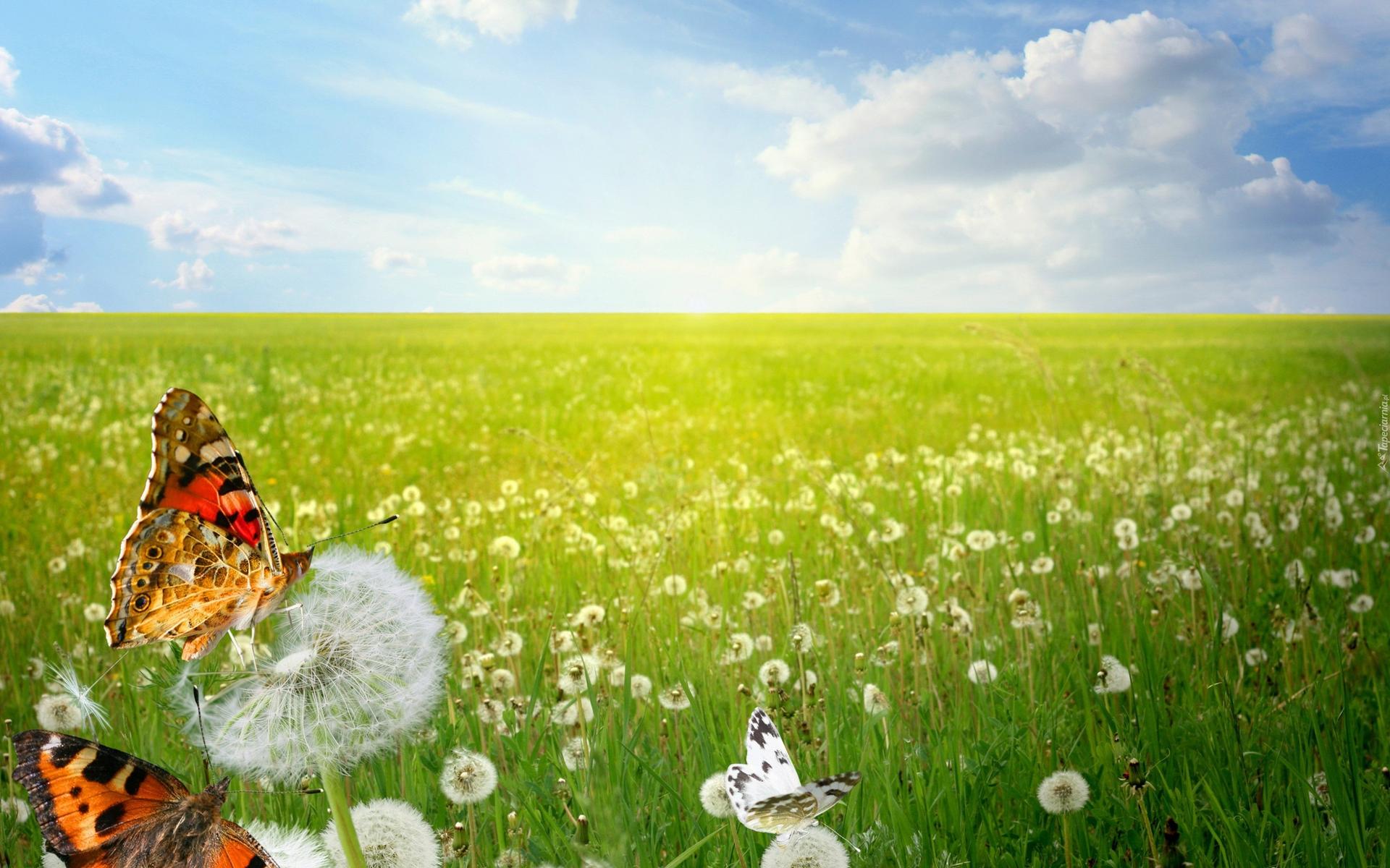 бабочки летают над лугом