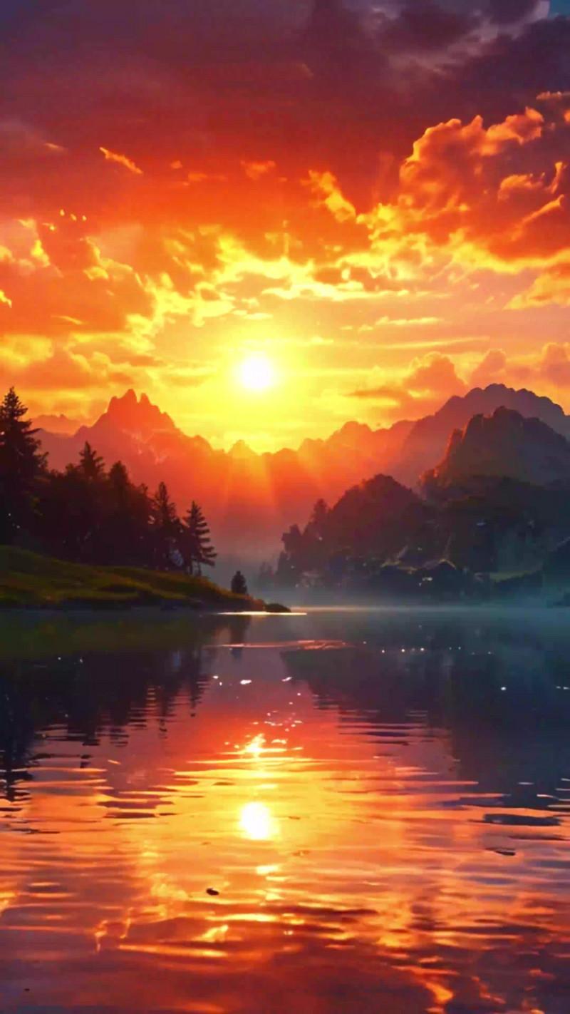 закат над озером