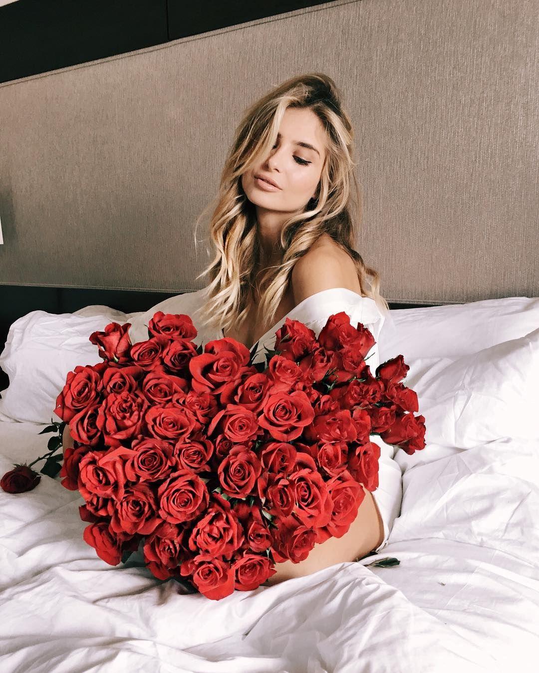 блондинка с розами