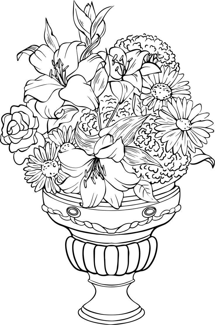 ваза с цветами раскраска