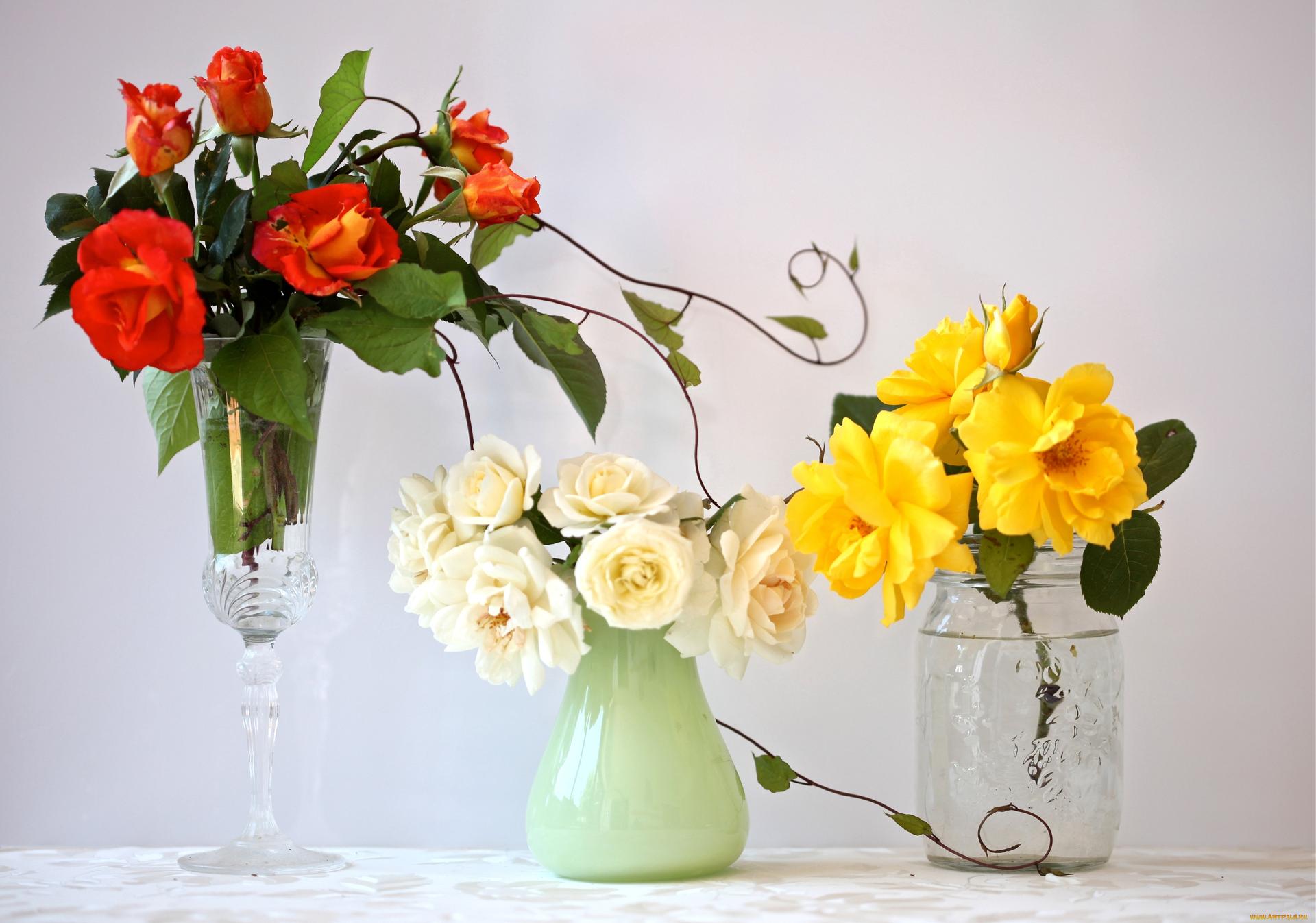 красивые цветы в вазах
