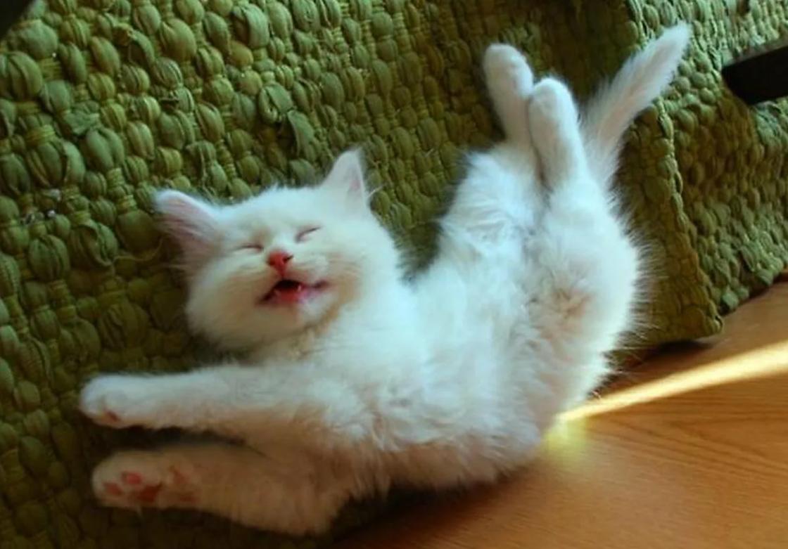 кот потягивается