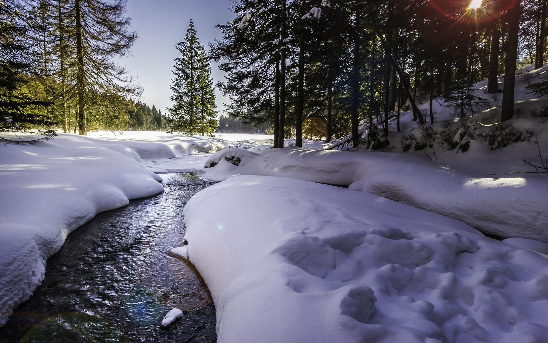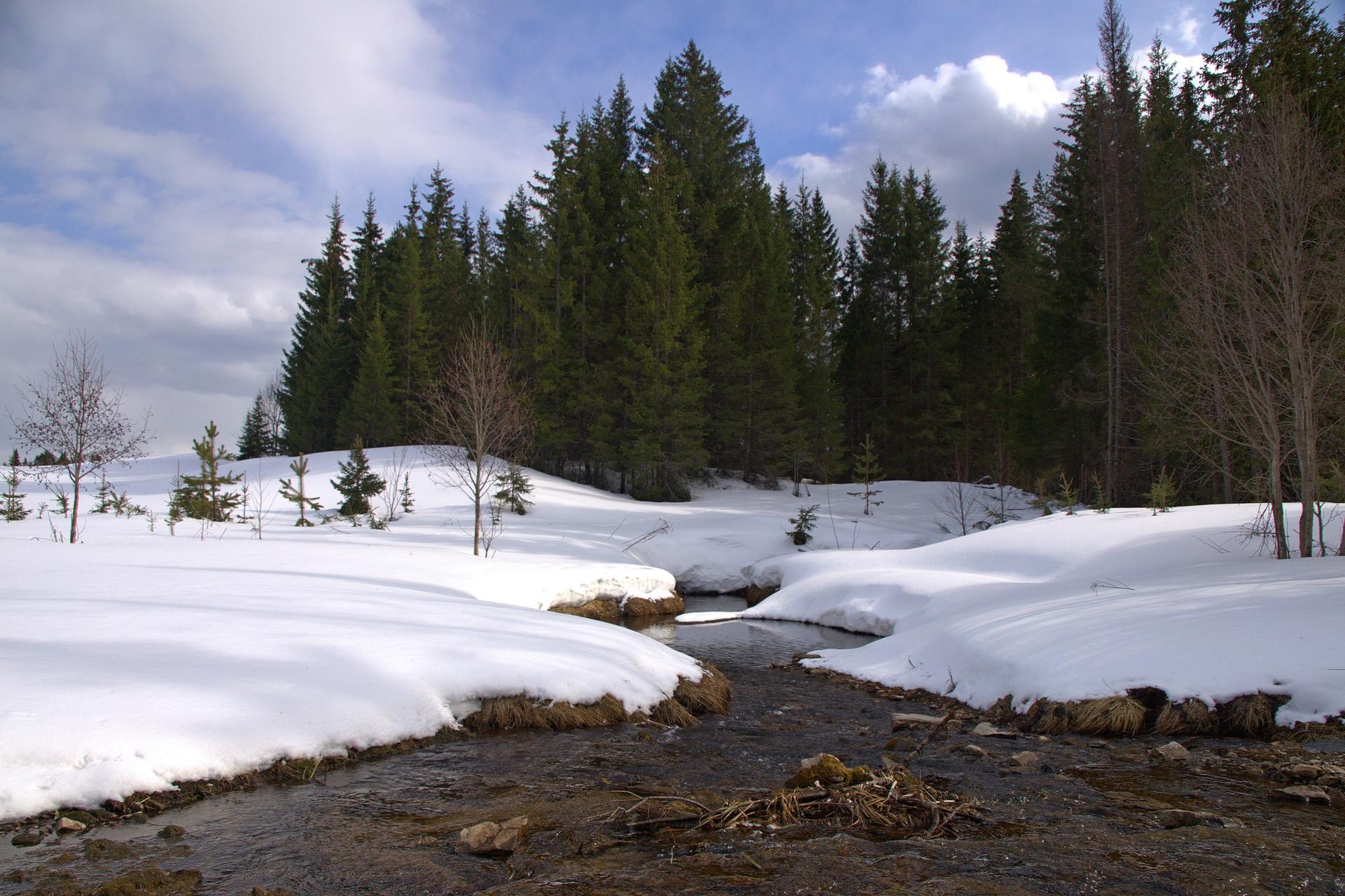 ручей зимой