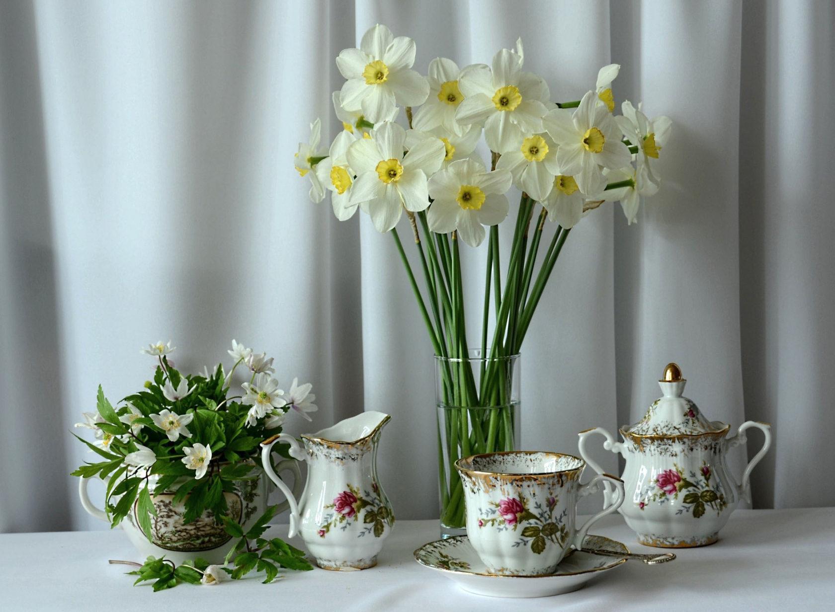 весенние цветы в вазе