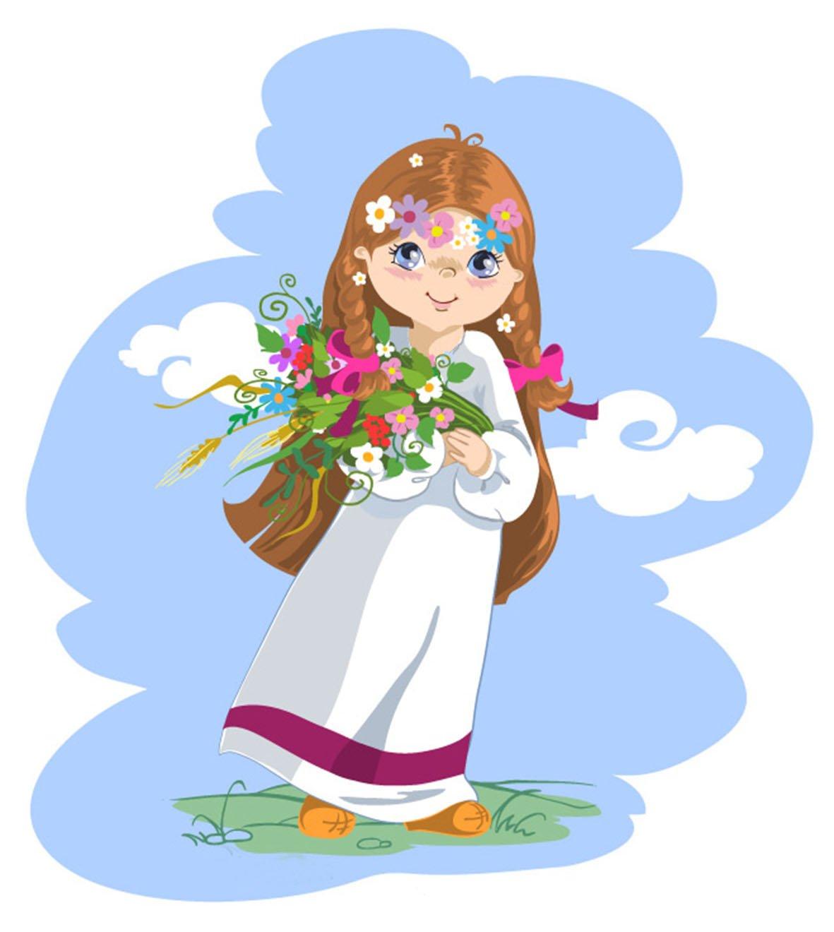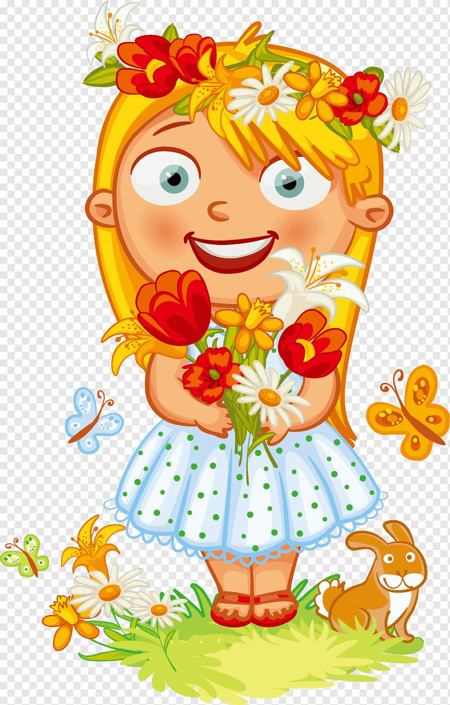 девочка с цветами рисунок