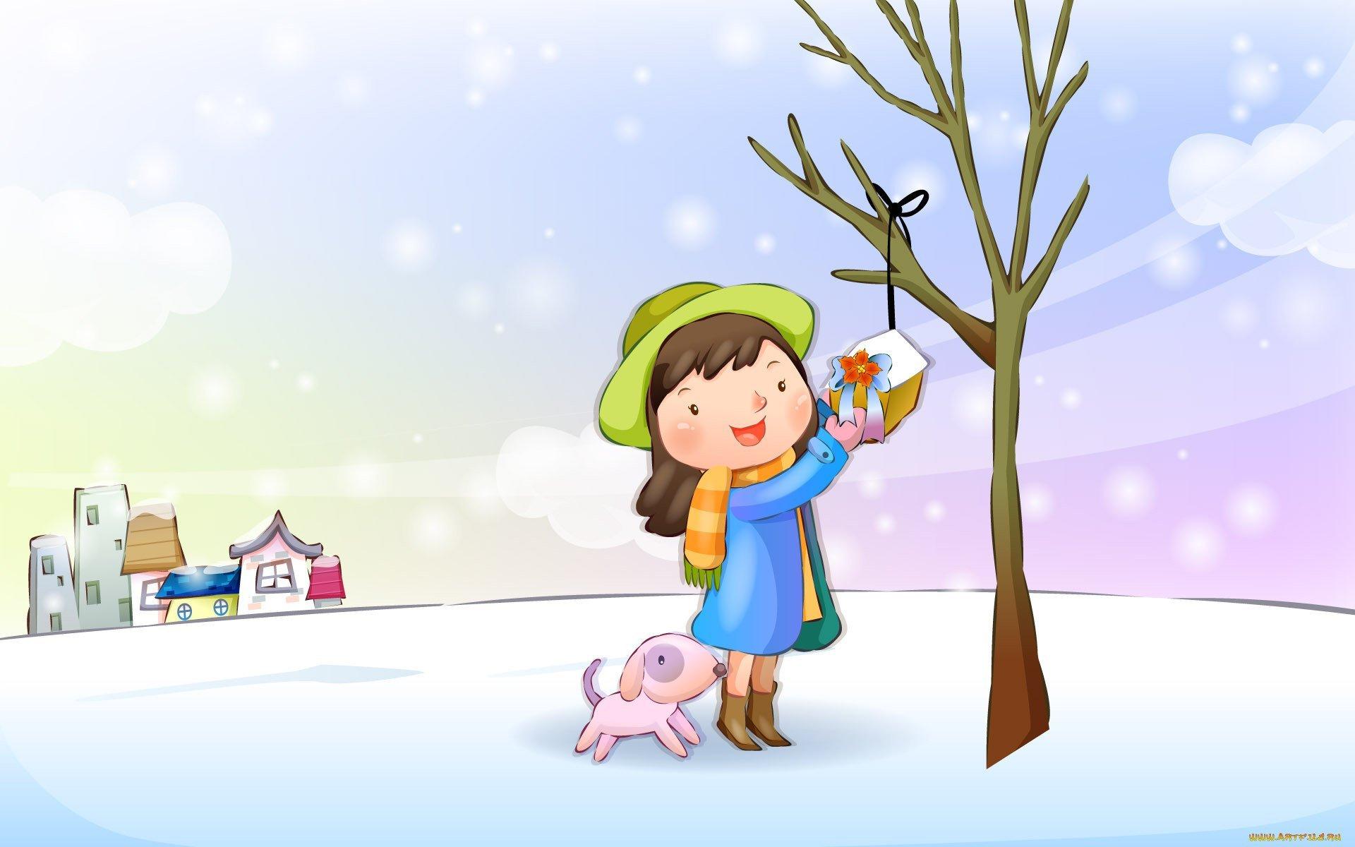 девочка зимой рисунок