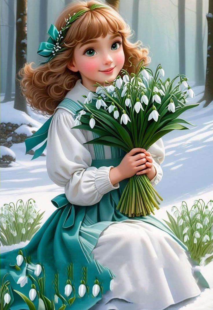 девушка с подснежниками