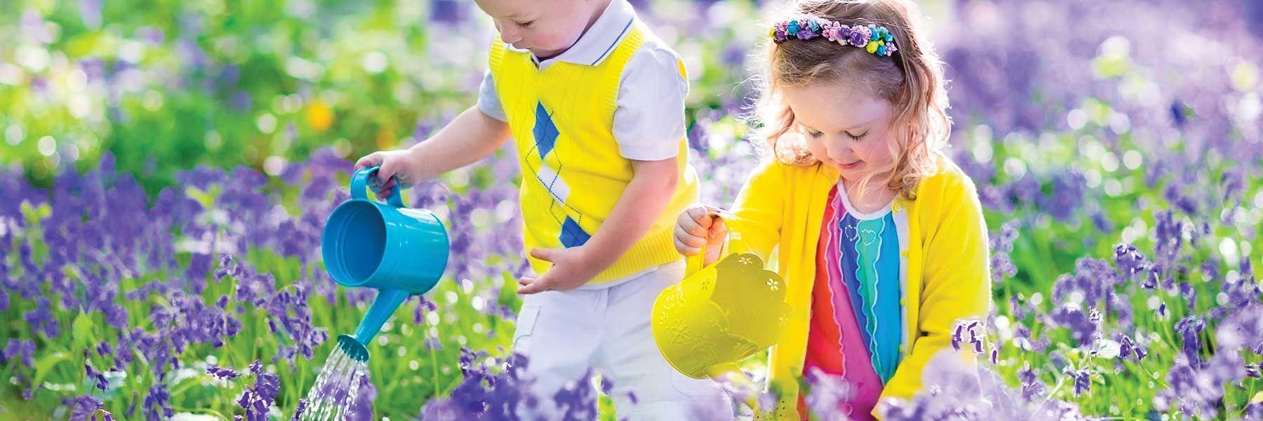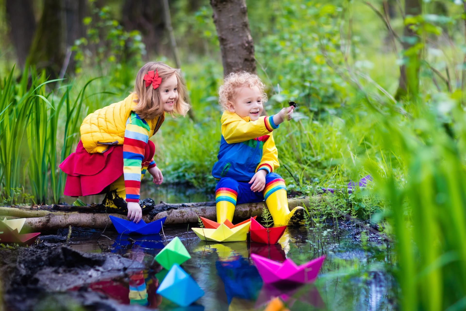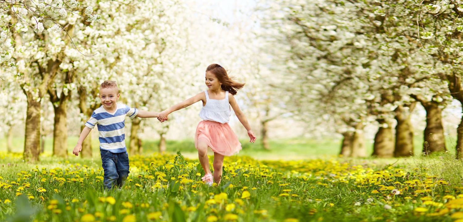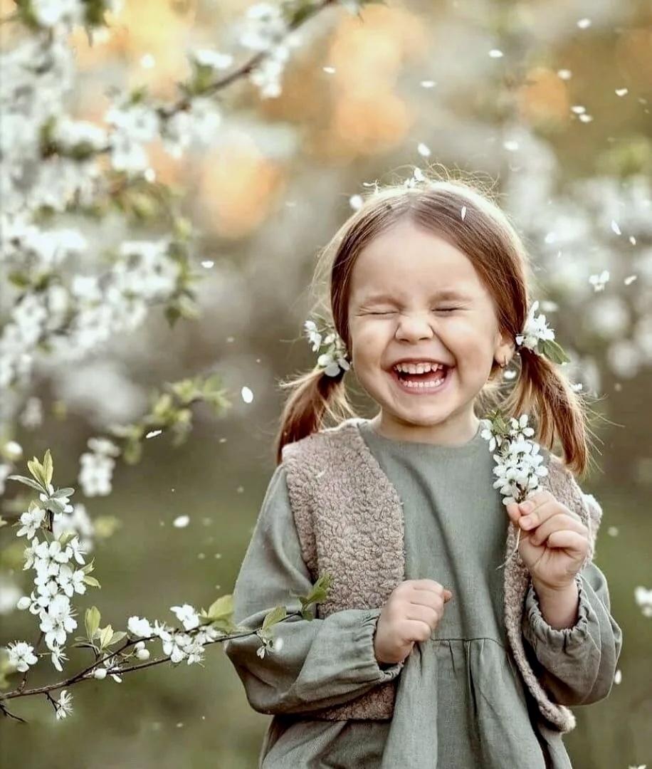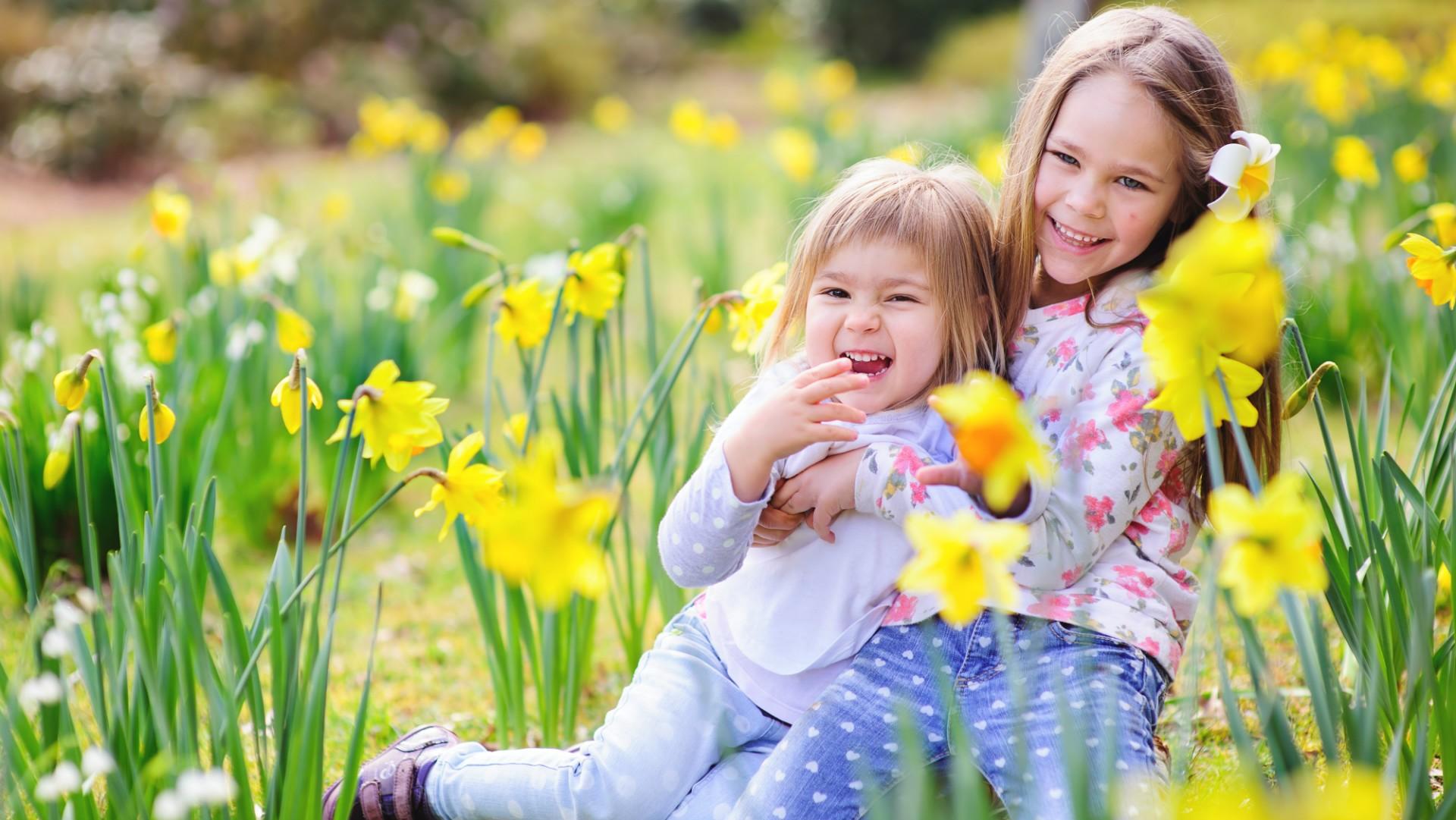 радостные дети весной