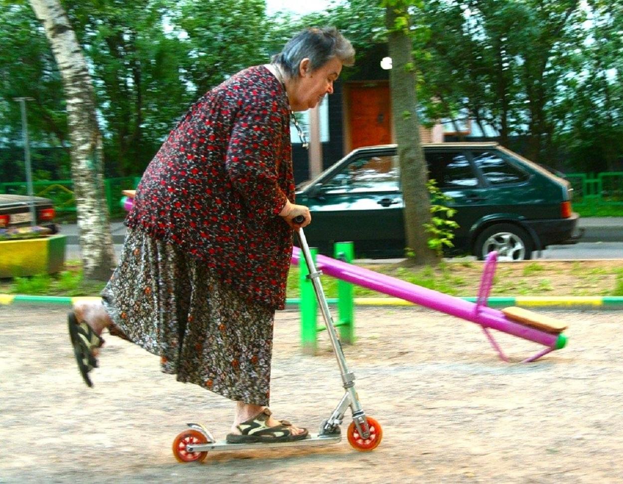 бабка на самокате