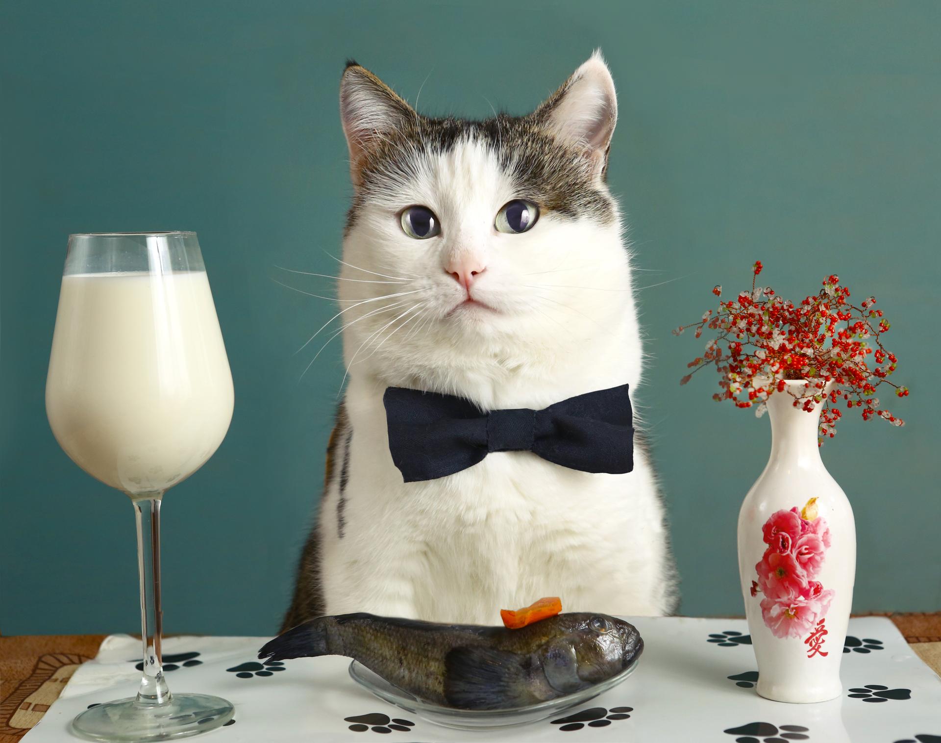 кот со стаканом молока