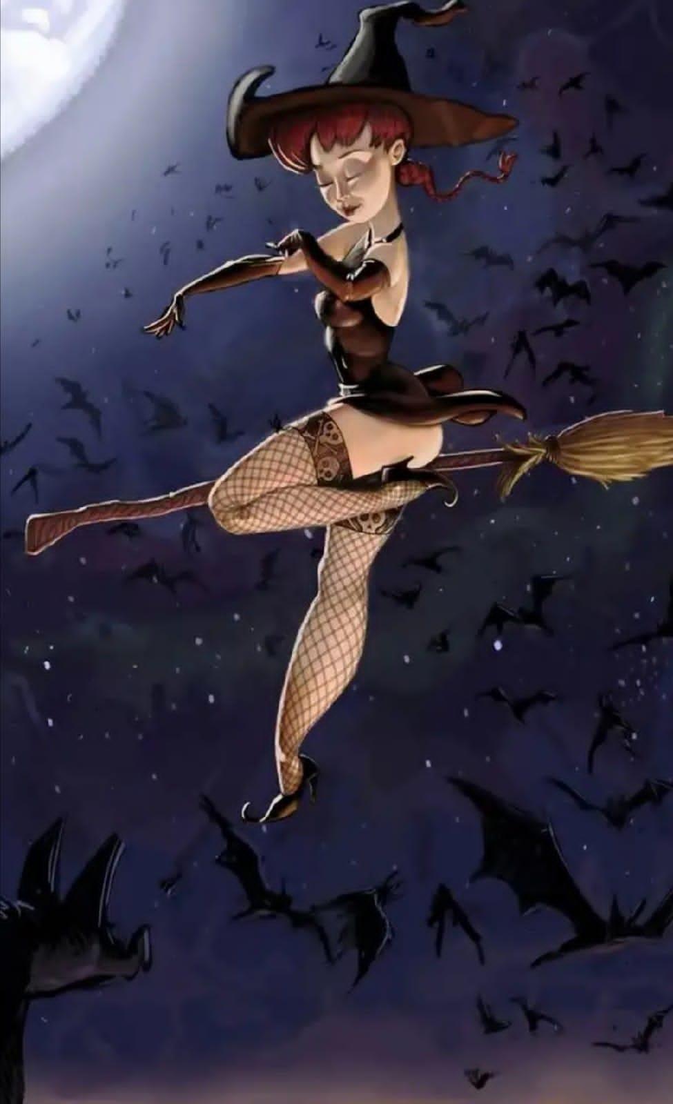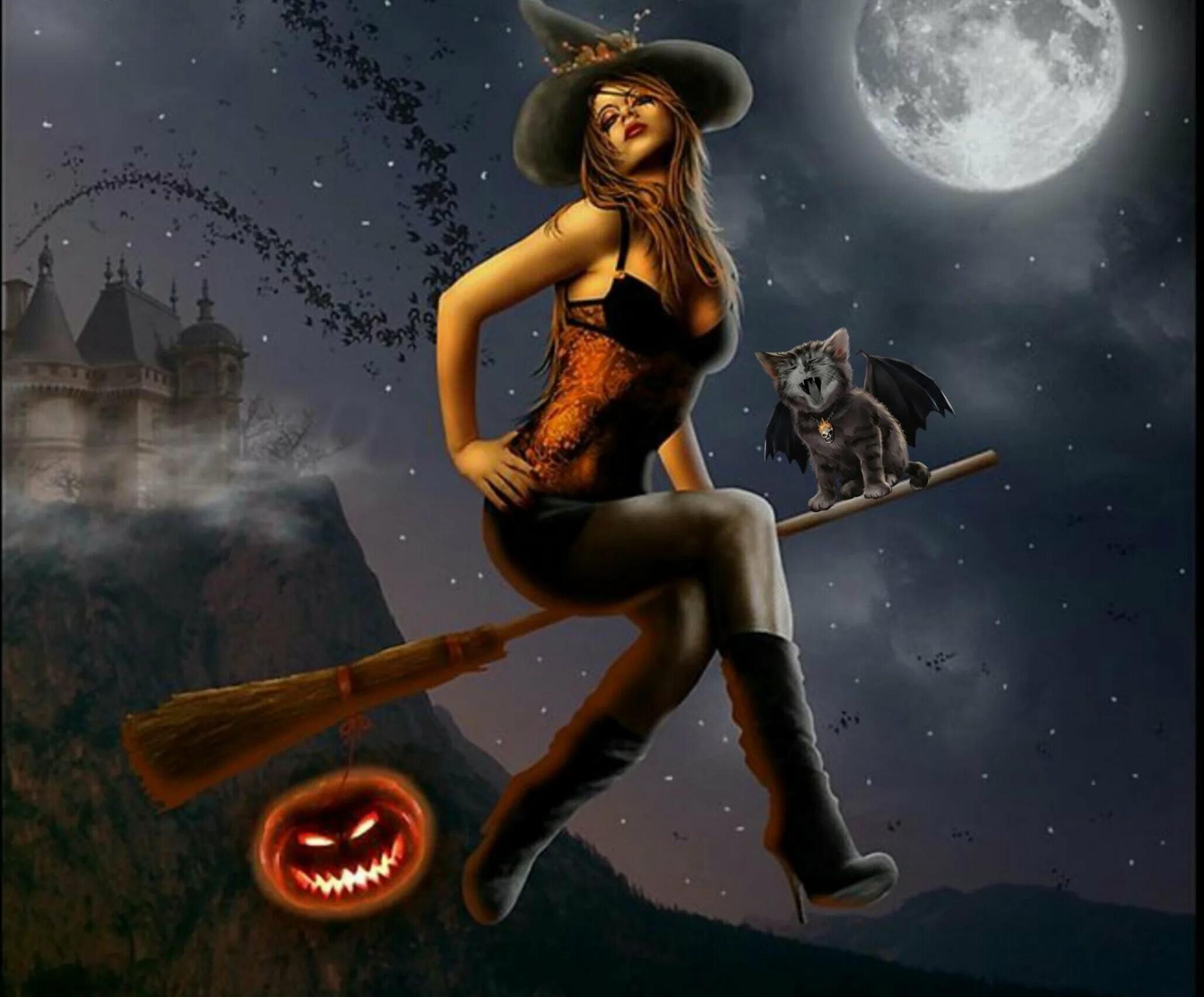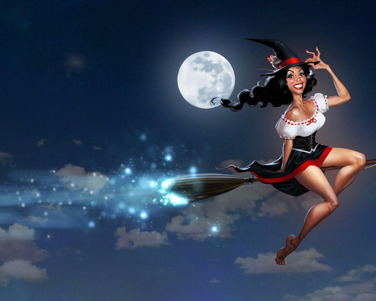 Красивые картинки С ведьмами на метле прикольные с надписями