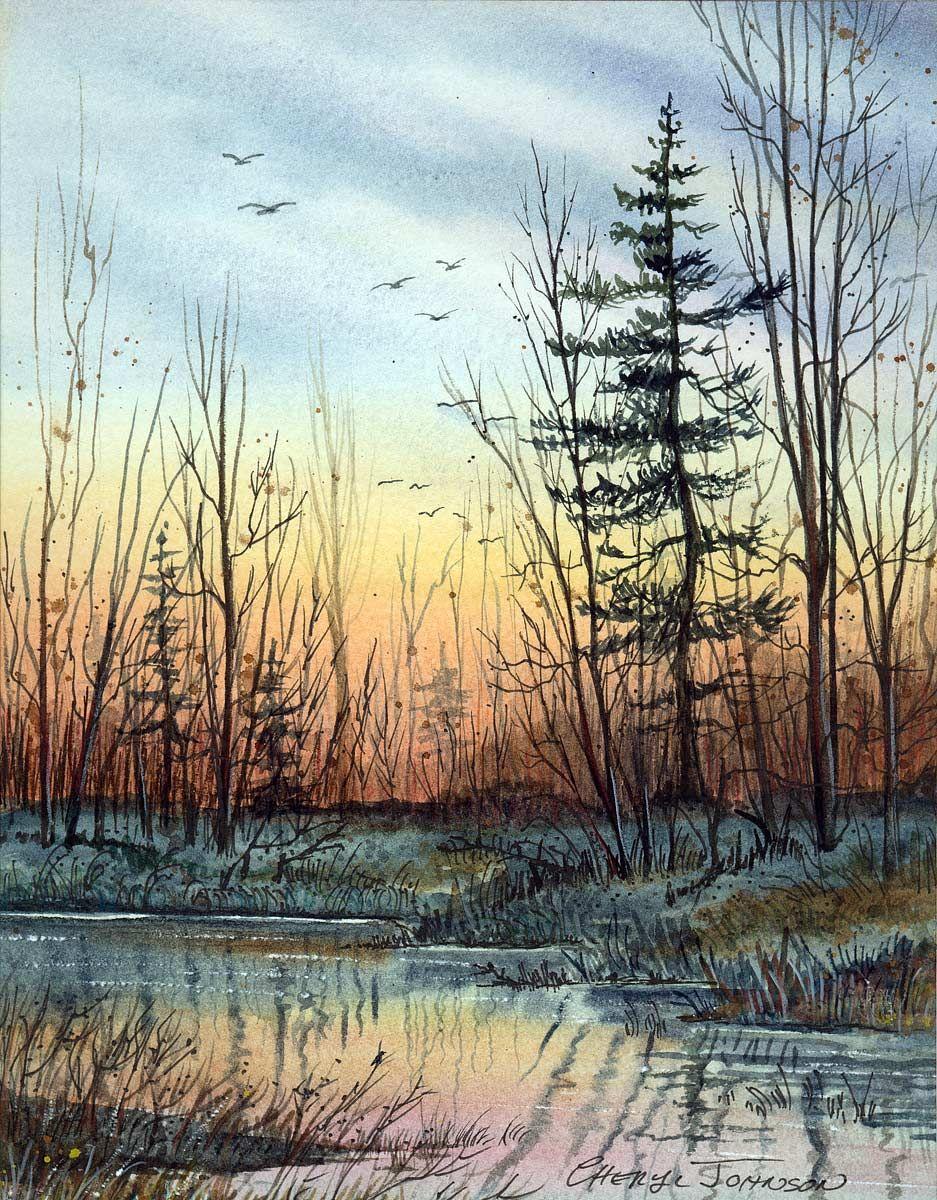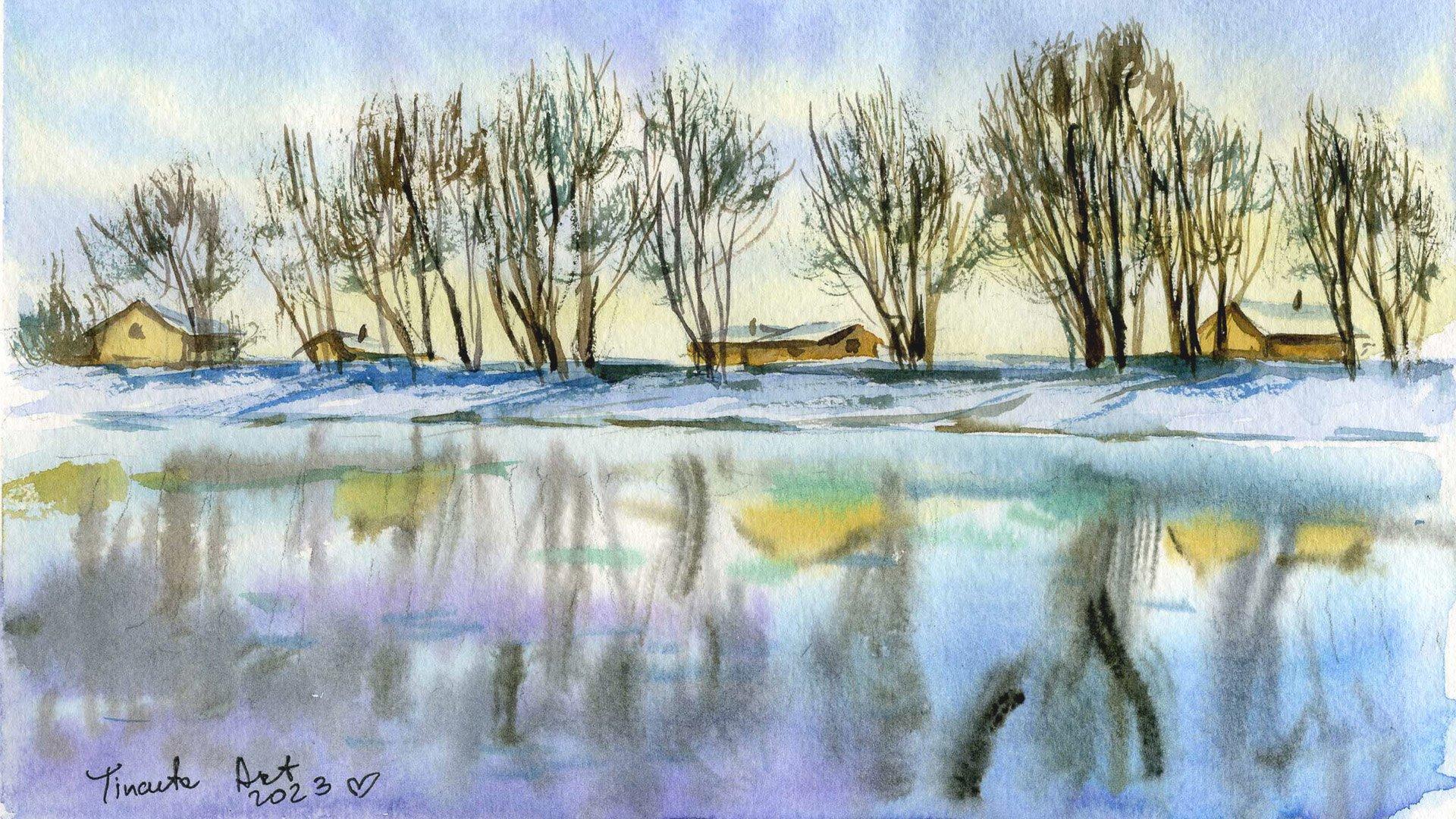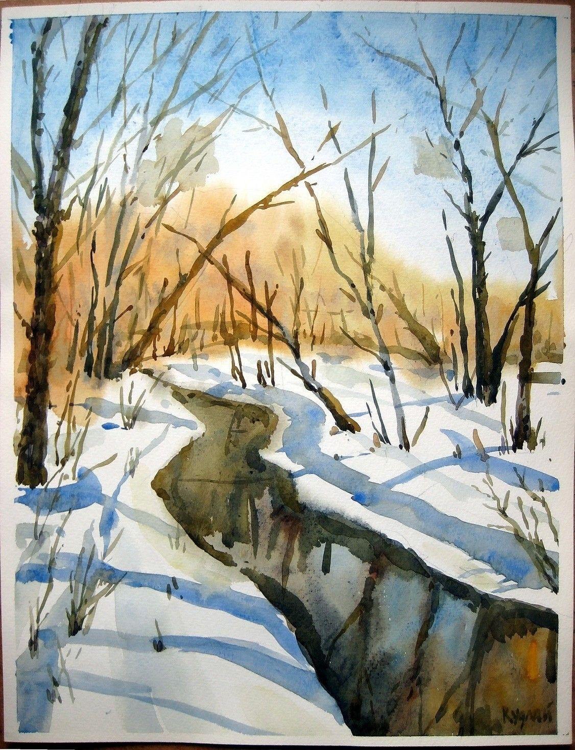 зимние пейзажи акварелью