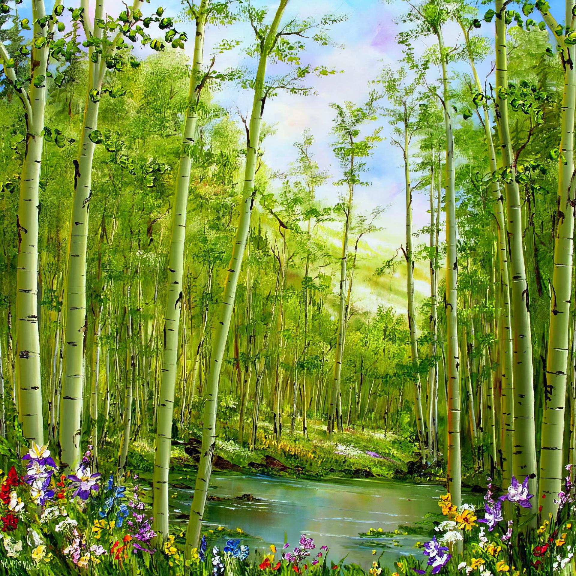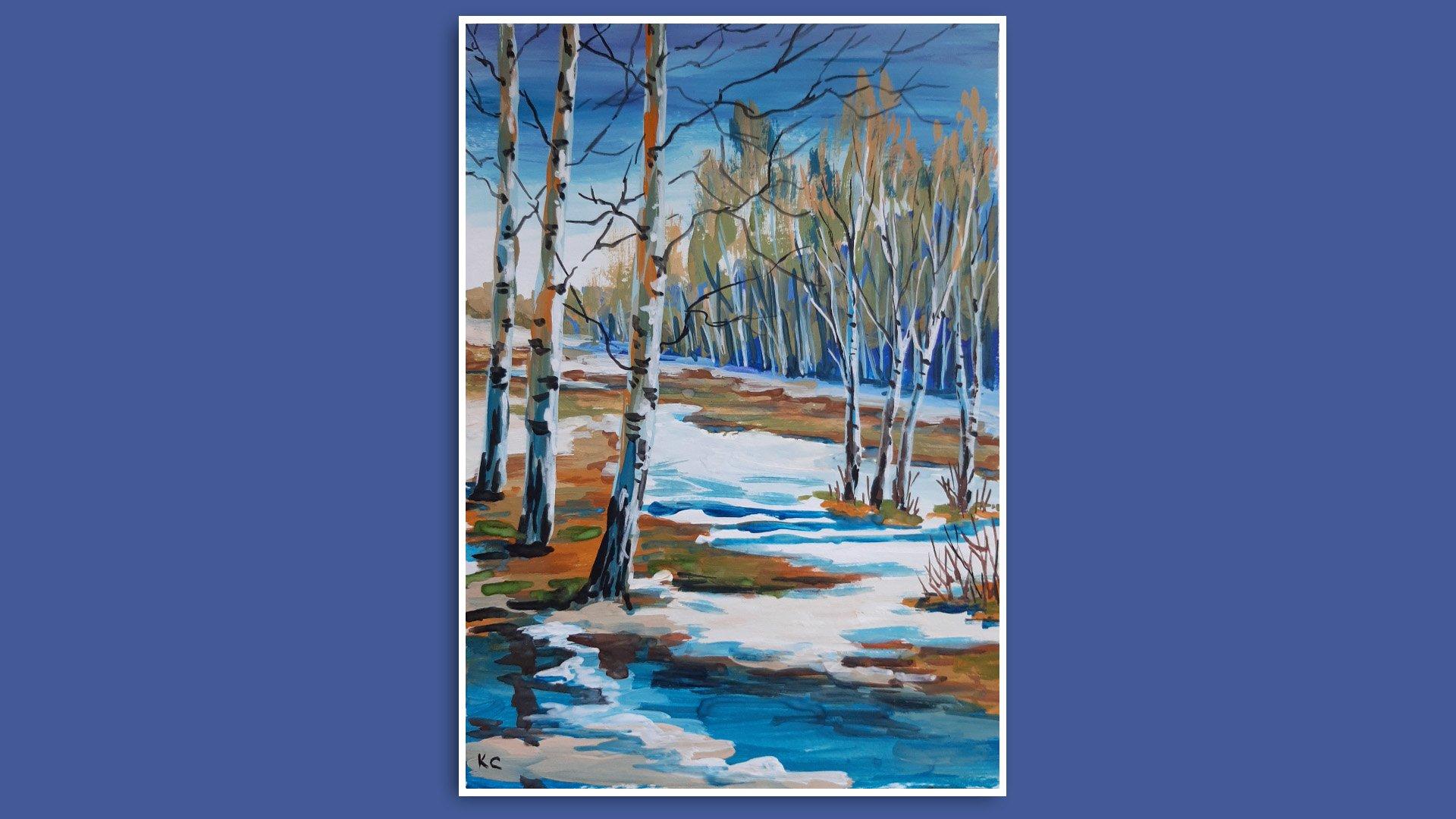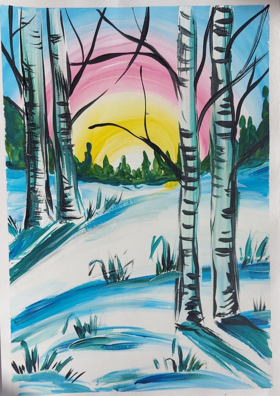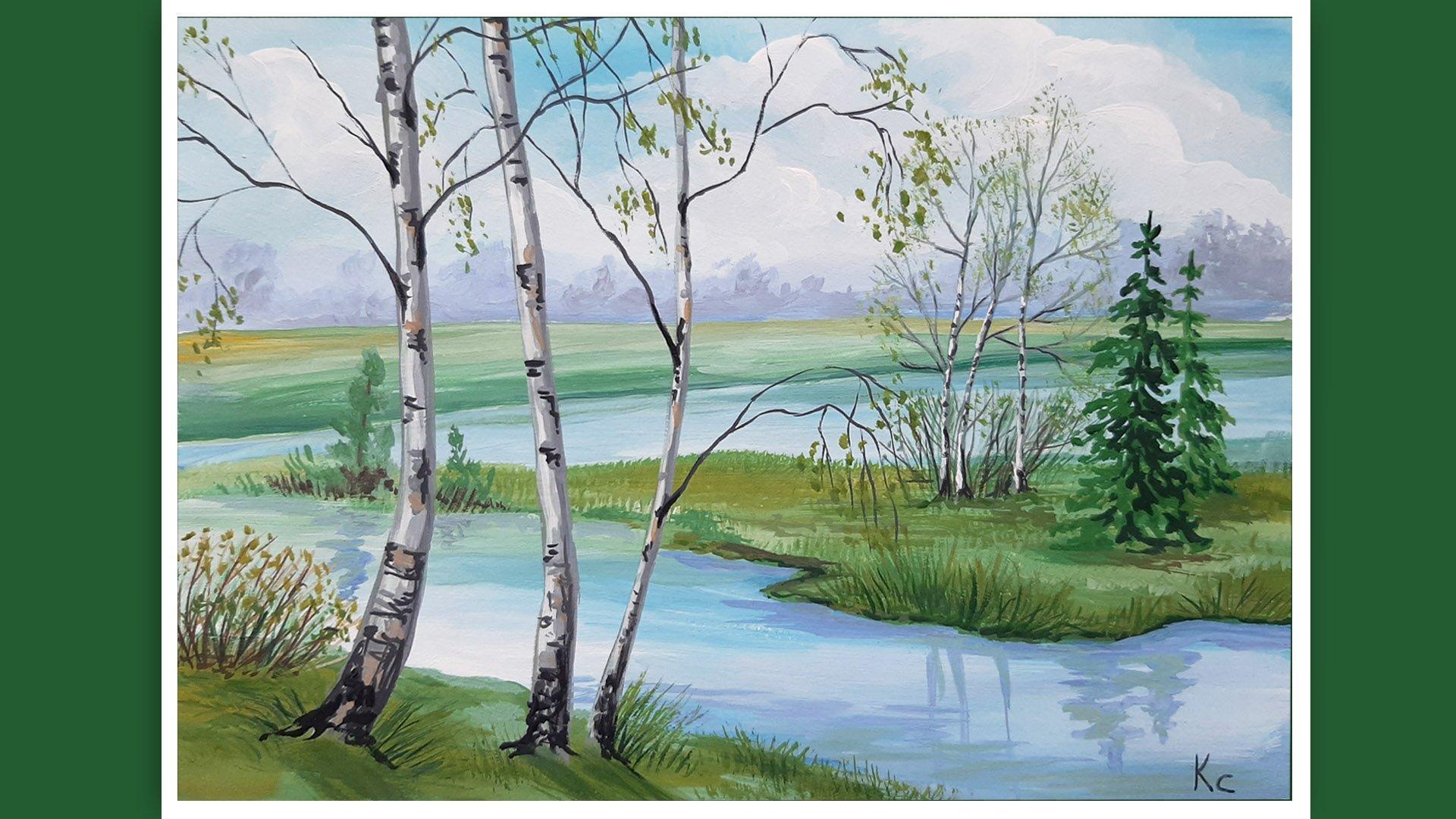 пейзаж с березами гуашью