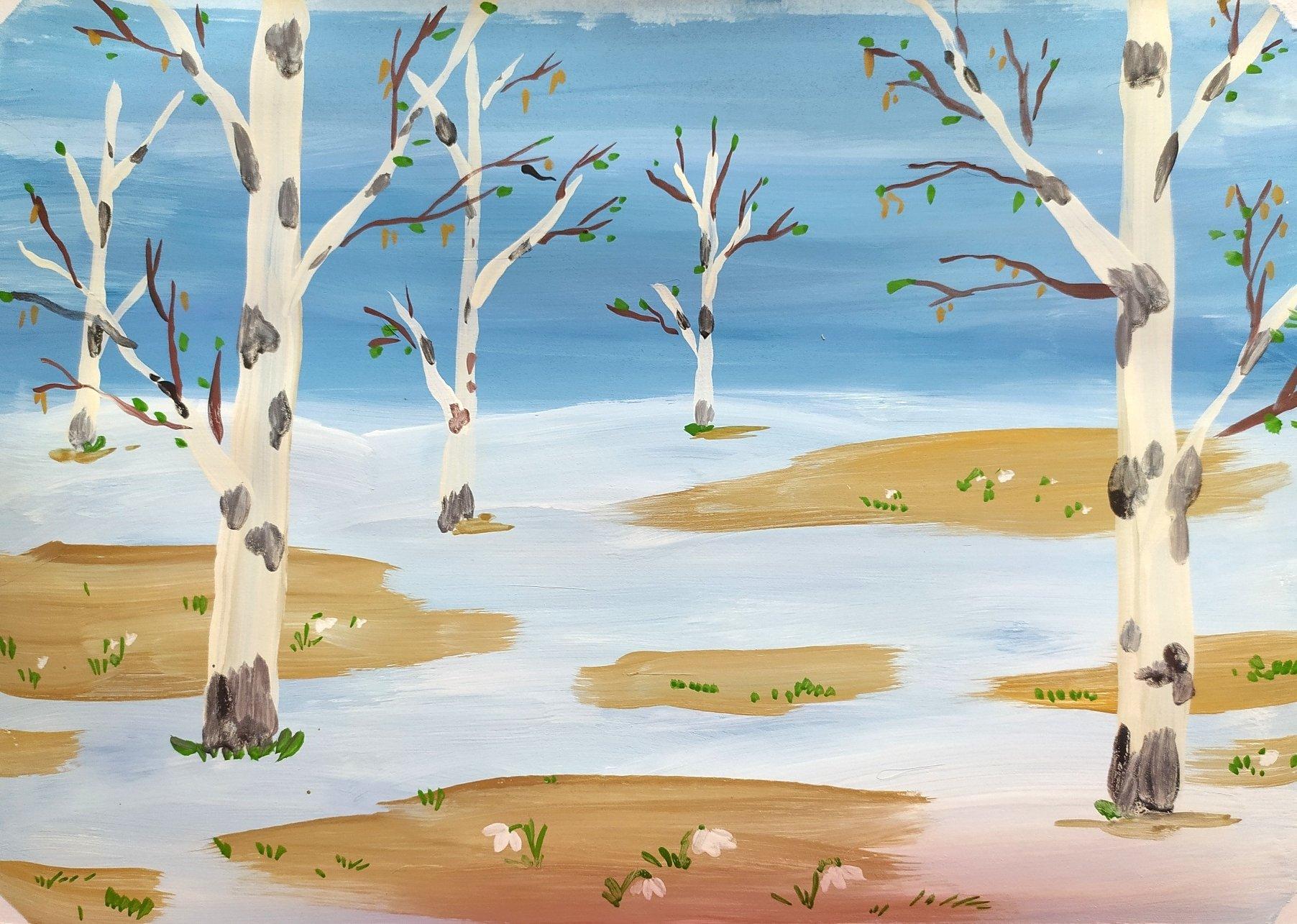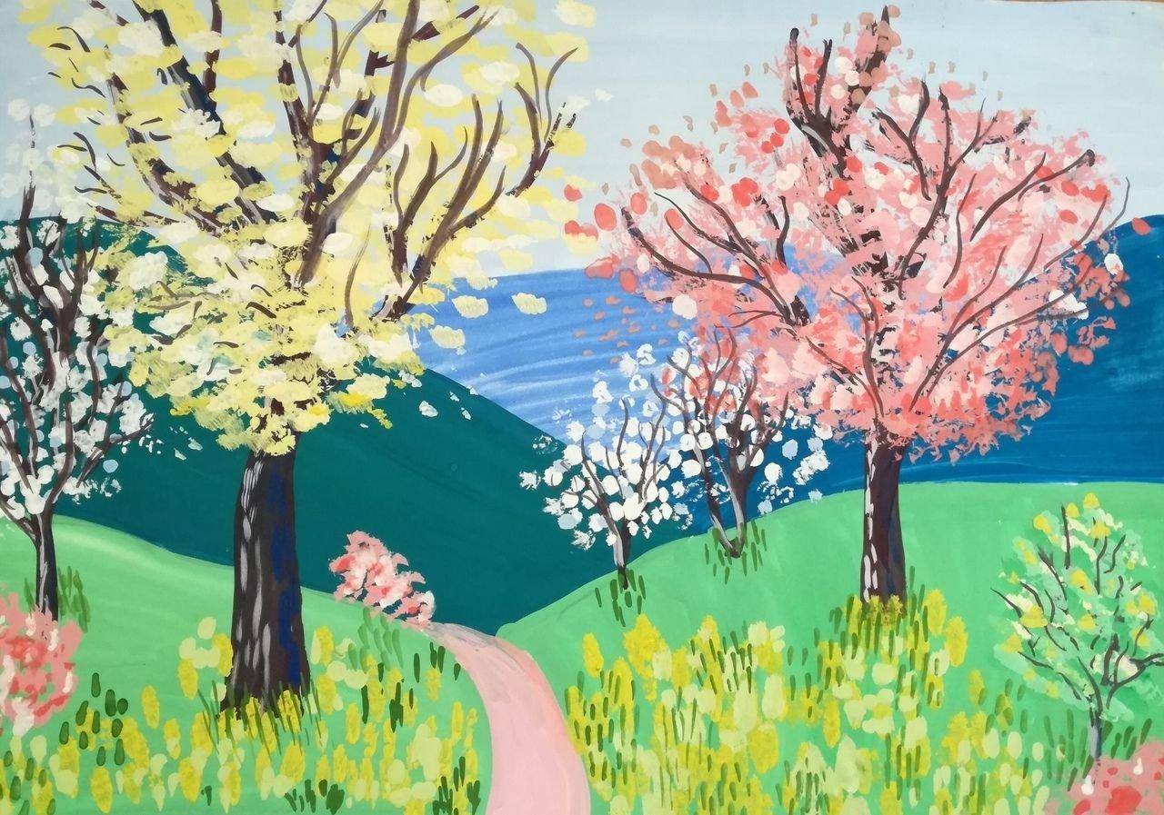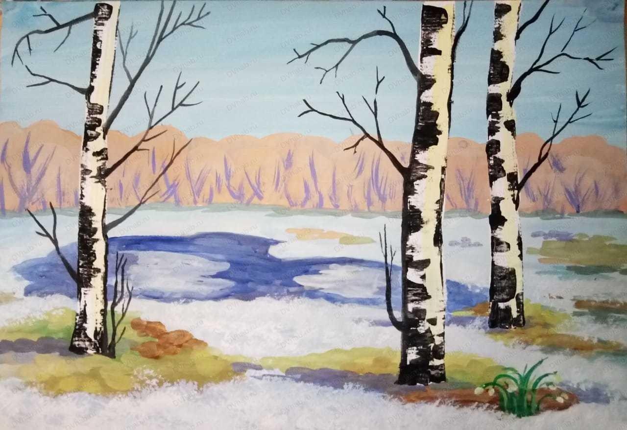 рисунок гуашью весна