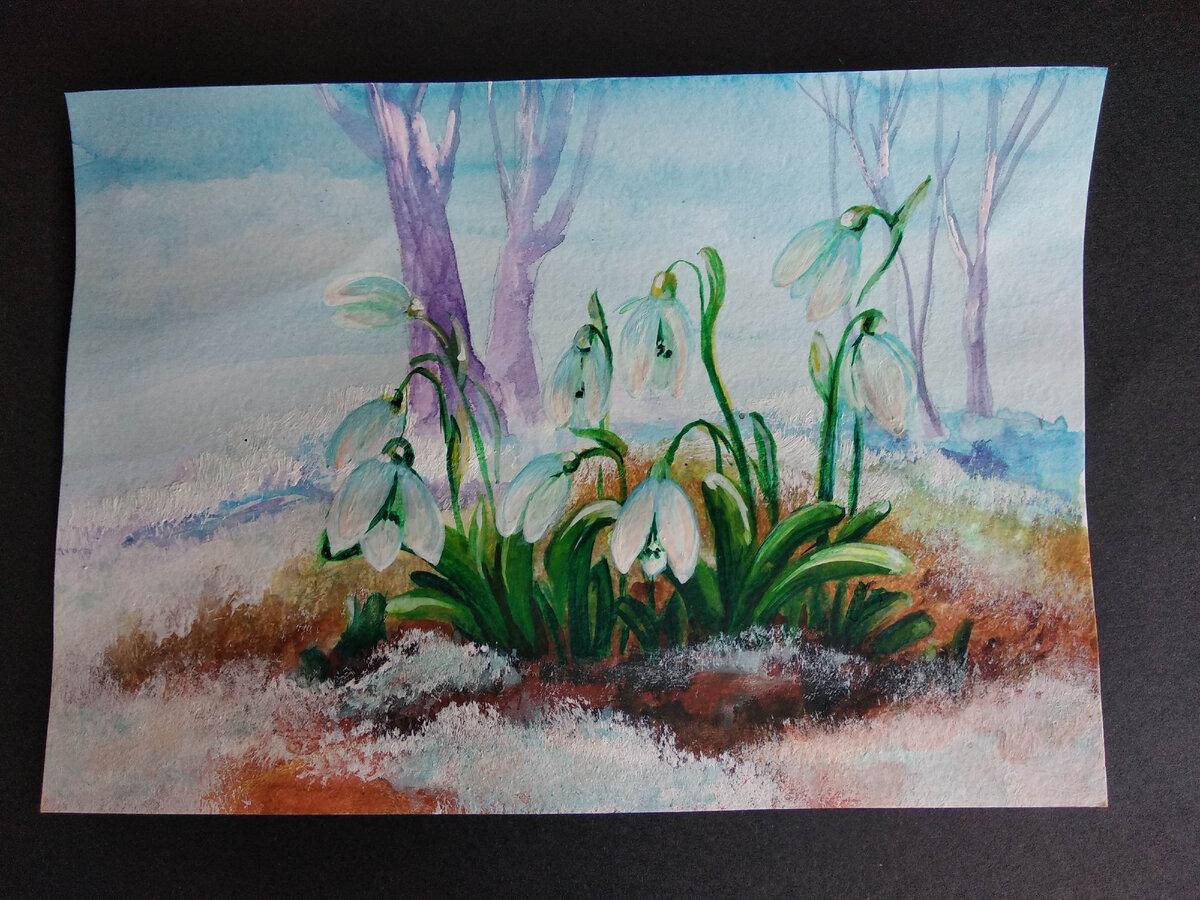 подснежники гуашью