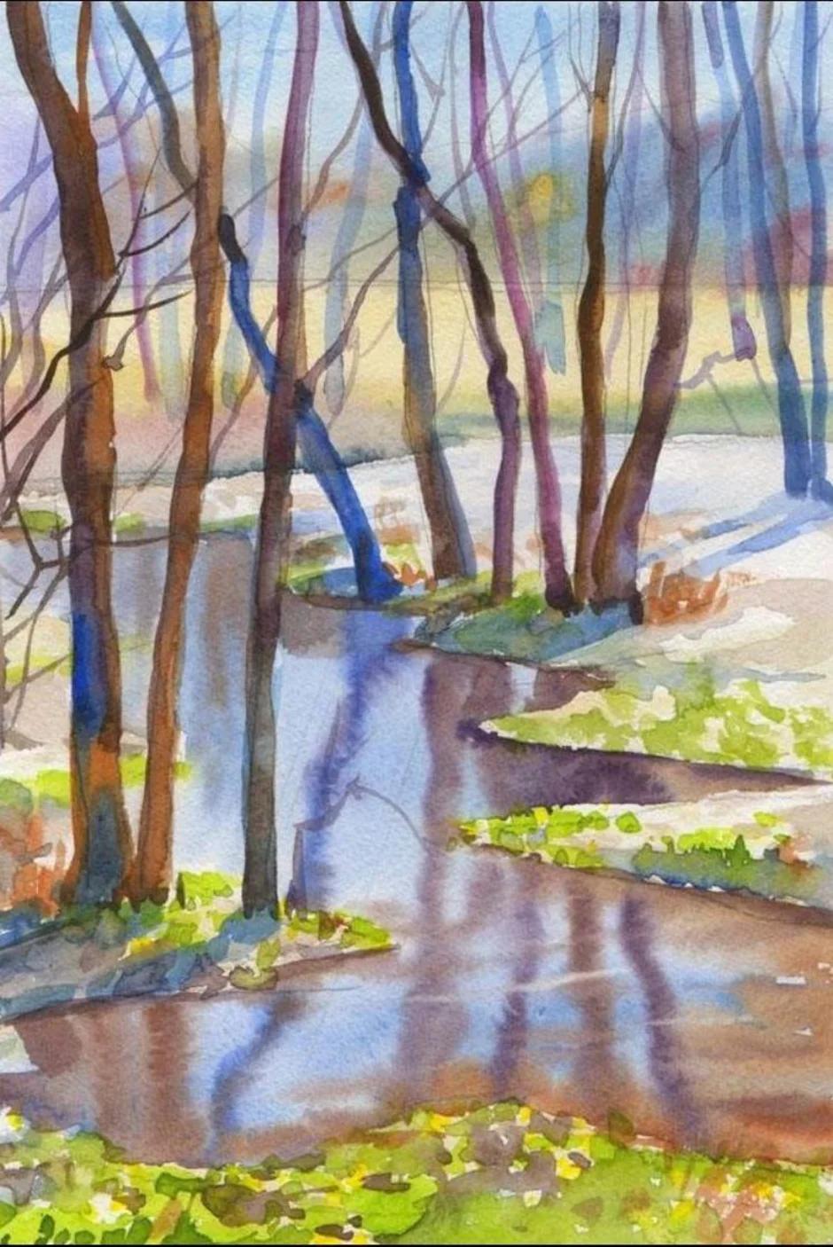 ранняя весна акварель