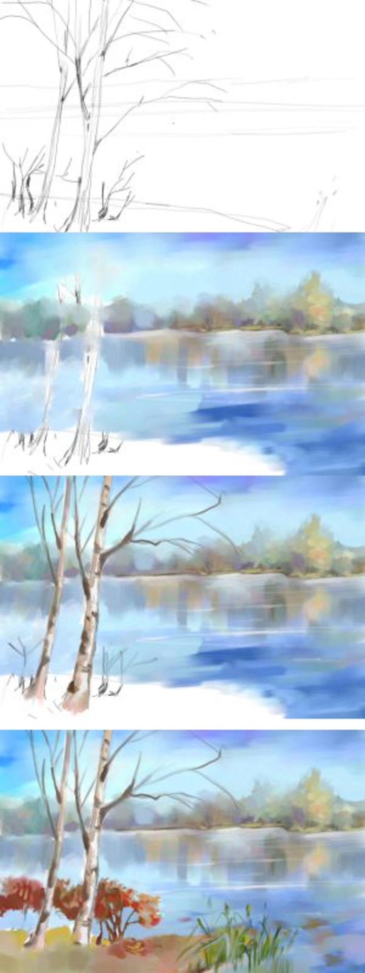поэтапное рисование пейзажа